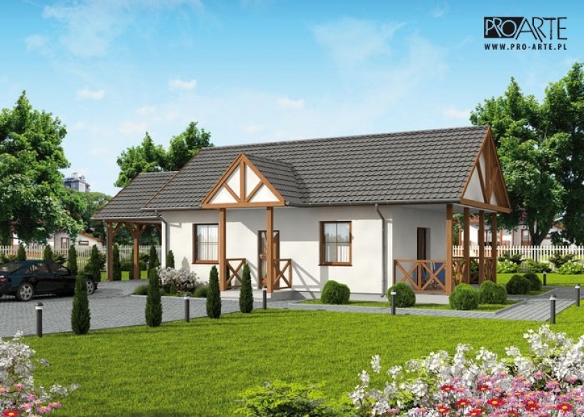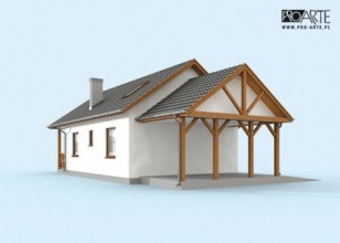 Montevideo - projekt domu parterowego z poddaszem użytkowym, wiatą i altaną. Projekt składa się z części architektonicznej, konstrukcyjnej, wewnętrznych instalacji wod.-kan, c. o. i elektrycznej. W projekcie załączone są podstawowe zestawienie stali, drewna i stolarki okienno-drzwiowej. Do projektu dołączamy bezpłatną zgodę na wprowadzenie zmian, oświadczenie projektantów o wykonaniu projektu zgodnie z obowiązującymi normami i przepisami oraz kserokopie uprawnień projektantów wraz z aktualnym wpisem do izby.