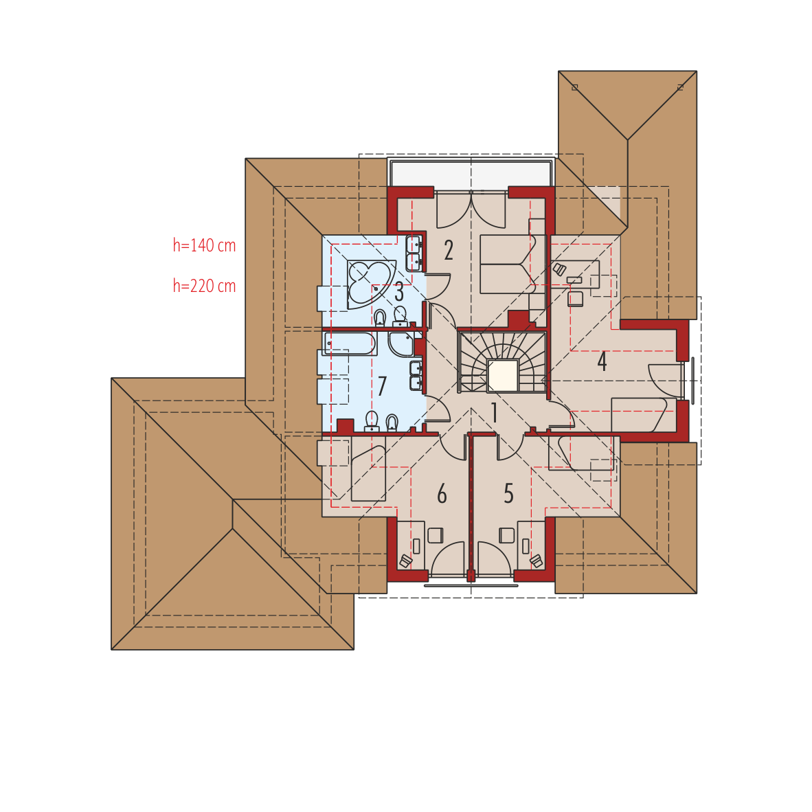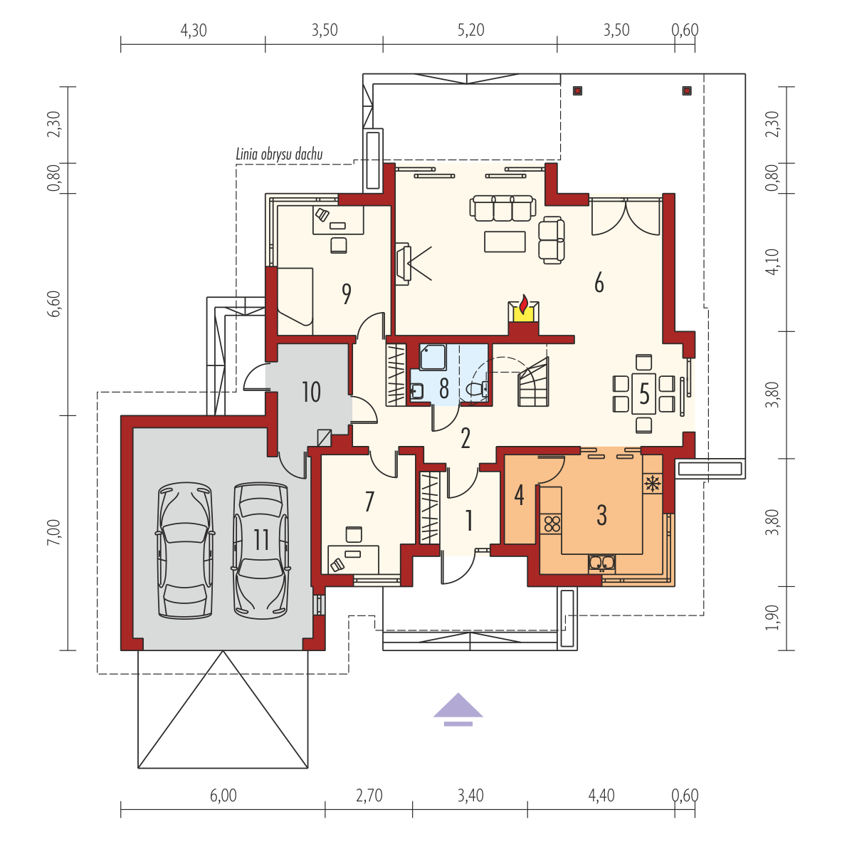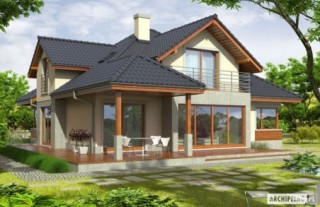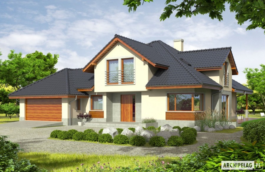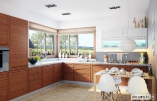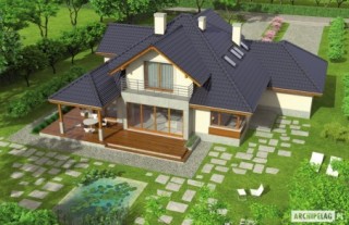 Charakterystyka: Dom parterowy z poddaszem użytkowym, niepodpiwniczony, z garażem dwustanowiskowymPrzeznaczenie: Dom dla 4-7-osobowej rodziny Technologia i konstrukcja:Ściany zewnętrzne: murowane, dwuwarstwowe, beton komórkowy Ytong 24 cm, ocieplenie wełna mineralna 12 cmStrop: międzypiętrowy gęstożebrowy TerivaDach: konstrukcja drewniana, ocieplenie wełna mineralna 30 cm, dachówka ceramiczna lub cementowaInne: schody wewnętrzne drewniane Rozwiązania instalacyjne:Ogrzewanie: kocioł gazowy kondensacyjny, rozprowadzenie ciepła: grzejnikiWentylacja: grawitacyjna Wykończenie:Elewacje: tynk cienkowarstwowy mineralny w kolorze kremowym, okładzina drewniana i kamienna lub z konglomeratu kamiennegoStolarka: drewniana lub PCV, drzwi wejściowe i brama garażowa firmy HörmannOkna połaciowe: rozwiązania technologiczne i wyłaz dachowy firmy FAKROOtoczenie: system tarasowy ProDeck - deska kompozytowa Terra w kolorze kasztanWersje - zapytaj o dostępność:- Naomi - bez garażu lub z garażem jednostanowiskowym- Naomi II – z systemem suchej zabudowy ścian działowych i poddaszy firmy Rigips, różne wersje garaży- odbicie lustrzane do każdej wersji Istnieje techniczna możliwość:- podpiwniczenia budynku- wykonania budynku w technologii szkieletowej