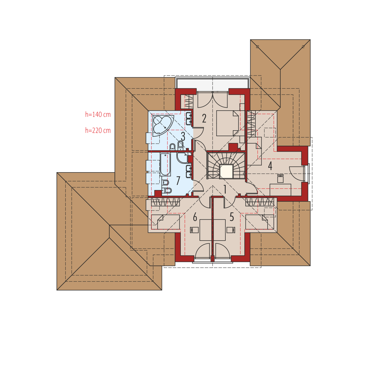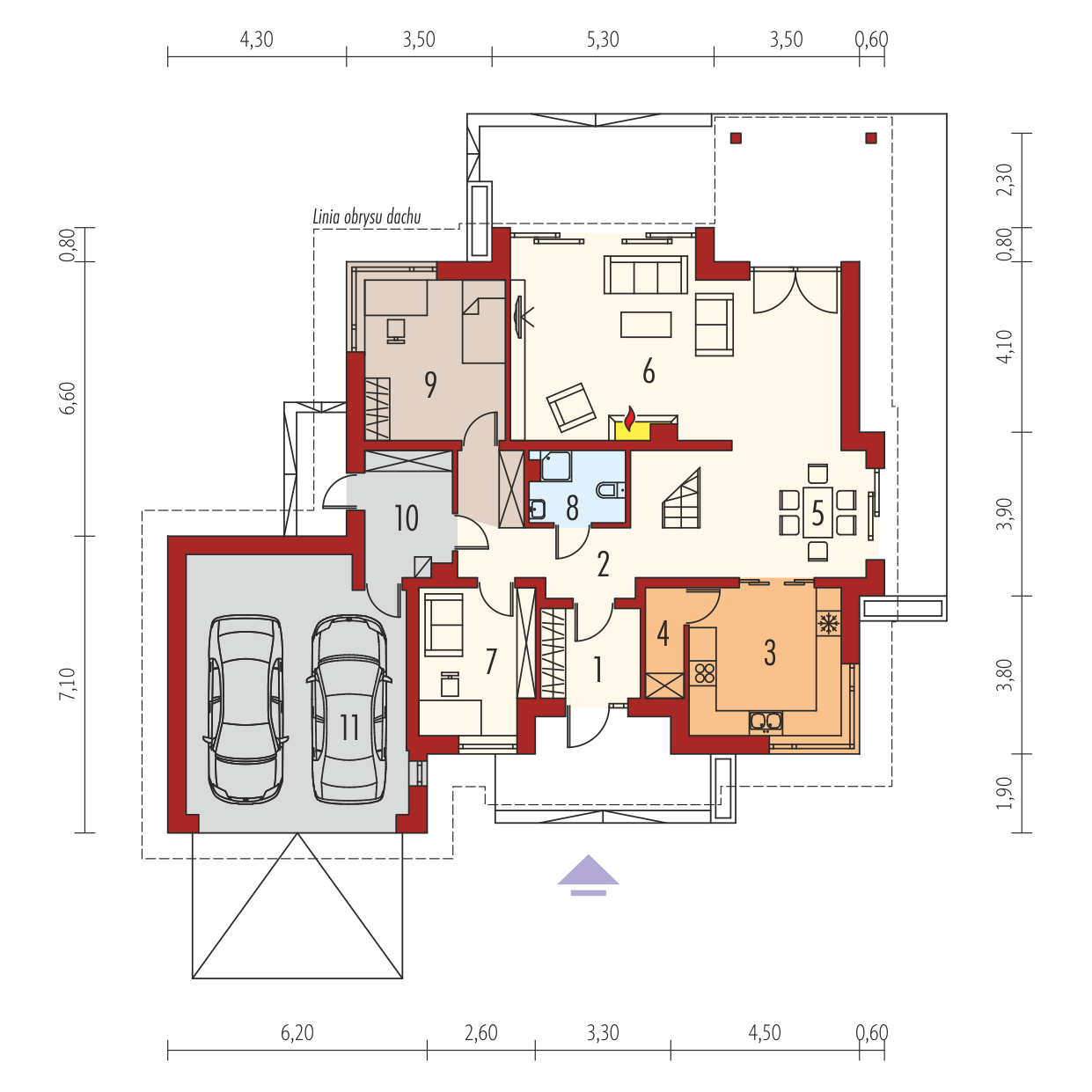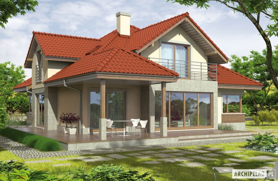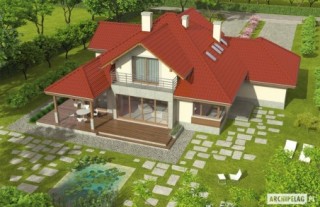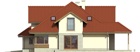 W projekcie zastosowano systemy zabudowy poddaszy, ścian działowych i sufitów podwieszanych Rigips. Charakterystyka: dom parterowy z poddaszem użytkowym, niepodpiwniczony, z garażem dwustanowiskowymPrzeznaczenie: dom dla 4-7-osobowej rodzinyTechnologia i konstrukcja:Fundamenty: ławy, bloczki betonowe 24 cm, ocieplenie styropian 15 cmŚciany zewnętrzne: murowane, dwuwarstwowe, beton komórkowy 24 cm, ocieplenie 20 cmŚciany wewnętrzne: ściany nośne murowane 24 cm, ścianki działowe w systemie suchej zabudowy Rigips 12 cmPodłoga na gruncie: płyta betonowa, ocieplenie styropian 15 cmStrop: strop międzypiętrowy gęstożebrowy TerivaDach: konstrukcja drewniana, ocieplenie wełna mineralna 30 cm, dachówka cementowa IBFRozwiązania instalacyjne: Ogrzewanie: kocioł gazowy, rozprowadzenie ciepła: grzejniki Wentylacja: grawitacyjna Wykończenie:Elewacja: tynk cienkowarstwowy mineralny, okładzina drewniana i kamiennaStolarka: drewniana, PCV lub aluminiowa, drzwi wejściowe i brama garażowa firmy HörmannWersje - zapytaj o dostępność:- Naomi II – bez garażu lub z garażem jednostanowiskowym- Naomi - ściany działowe murowane, inne wykończenie elewacji, taki sam układ funkcjonalny, bez garażu, z garażem jedno- lub dwustanowiskowym- Odbicie lustrzane do każdej wersjiIstnieje techniczna możliwość:- podpiwniczeniaAtuty projektu okiem architekta:- Atrakcyjnie rozrzeźbiona bryła budynku z efektowną kaskadą dachów- Ściany wewnętrzne wykonane w technologii lekkiej pozwalające na dowolność w aranżacji pomieszczeń- Przestronne wygodne wnętrza z dużymi przeszkleniami otwierającymi dom na przydomową zieleń- Komfortowy salon z kominkiem oraz wyjściem na rozległy taras z podcieniem- Obszerna, wydzielona i praktycznie rozplanowana kuchnia z podręczną spiżarnią- Dodatkowe dwa pokoje na parterze, które można zagospodarować wg własnych potrzeb, na pokój dla starszej osoby, sypialnię dla gości, gabinet lub pracownię- Cztery wygodne sypialnie na poddaszu z oknami balkonowymi i połaciowymi zapewniają naturalne nasłonecznienie oraz kontakt z otoczeniem- Sypialnia główna z własną łazienką i wyjściem na balkon- Garaż oddzielony termicznie od ogrzewanej części budynku- Duże pomieszczenie kotłowni pozwala na zastosowanie dowolnego źródła ogrzewania