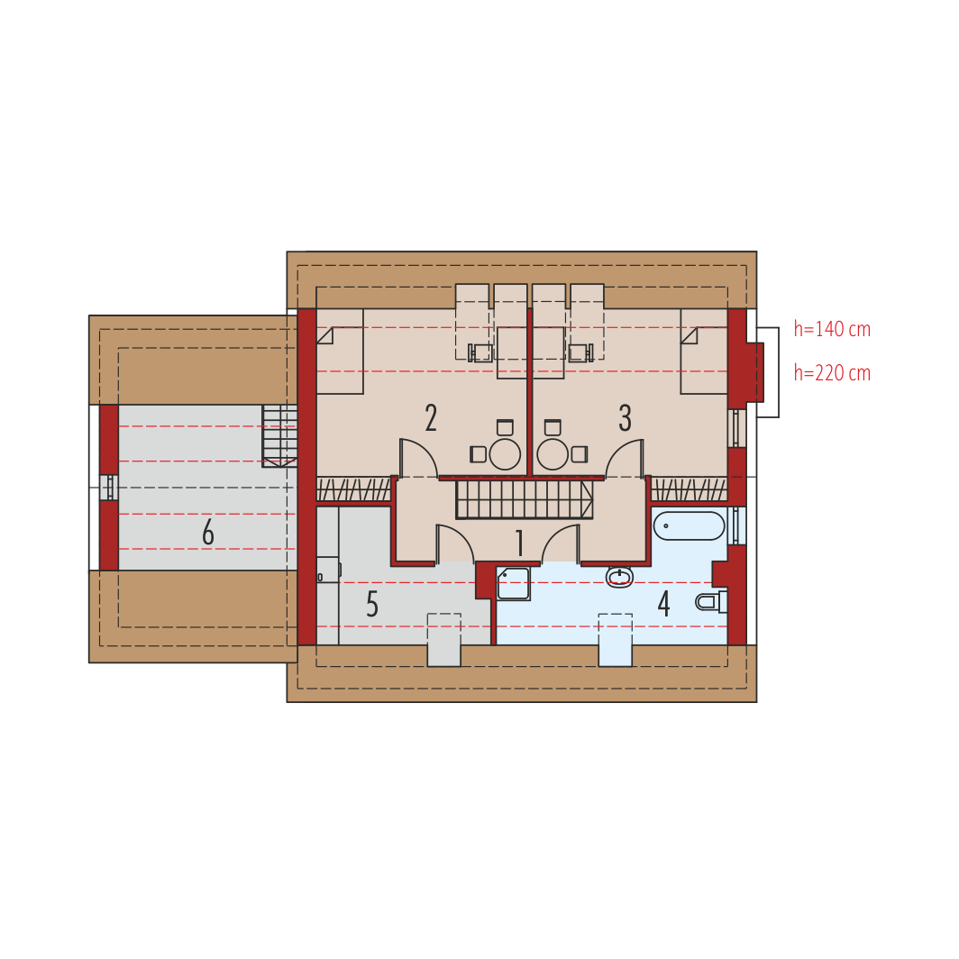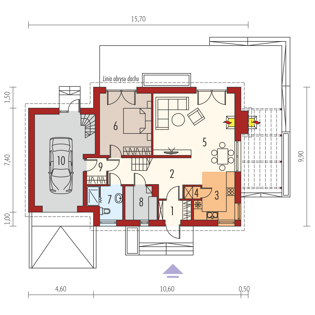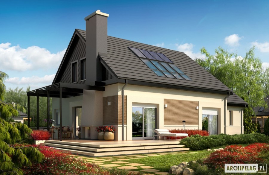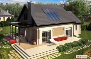 Charakterystyka: Dom parterowy z poddaszem użytkowym, niepodpiwniczony, z garażem jednostanowiskowymPrzeznaczenie: Dom dla 3-4-osobowej rodzinyTechnologia i konstrukcja: Ściany zewnętrzne: murowane, dwuwarstwowe z betonu komórkowego firmy H+H, izolacja wełna mineralna grubości 20 cm Strop: gęstożebrowy Dach: konstrukcja drewniana, izolacja wełna mineralna 30 cm, dachówka płaska lub inna o podobnych parametrach. Inne: schody wewnętrzne drewnianeRozwiązania instalacyjne: Ogrzewanie: kocioł gazowy, rozprowadzenie ciepła: grzejniki Wentylacja: grawitacyjna Wykończenie:Elewacje: tynk cienkowarstwowy mineralny oraz okładzina kamienna i klinkierowaStolarka okienna: drewniana, PCV lub aluminiowa. Rolety zewnętrzne w systemie CleverBox firmy BeCleverWersje - zapytaj o dostępność:- Niki II – bez garażu lub z garażem dwustanowiskowym- Niki (wersja B) – bez garażu, z garażem jedno- lub dwustanowiskowym, inne wykończenie elewacji oraz dach wielospadowy- Niki (wersja A) – bez garażu lub z garażem dwustanowiskowym, inne wykończenie elewacji oraz dach wielospadowy- Odbicia lustrzane do wszystkich wersji Istnieje techniczna możliwość:- podpiwniczenia budynku- możliwość zbliźniaczeni budynkuAtuty projektu okiem architekt:- Optymalny współczynnik kształtu budynku A/V sprzyjający energooszczędności- Okna o niskim współczynniku przenikania ciepła- Bryła sprzyja energooszczędności, zminimalizowane ryzyko występowania mostków termicznych- Szykowna kompozycja elewacji- Elastyczny układ pomieszczeń- Reprezentacyjny salon z kominkiem- Pokój dzienny oraz jadalnia doświetlone naturalnym światłem- Duża sypialnia z wyjściem na taras- Atrakcyjny taras z pergolą i kominkiem zewnętrznym
