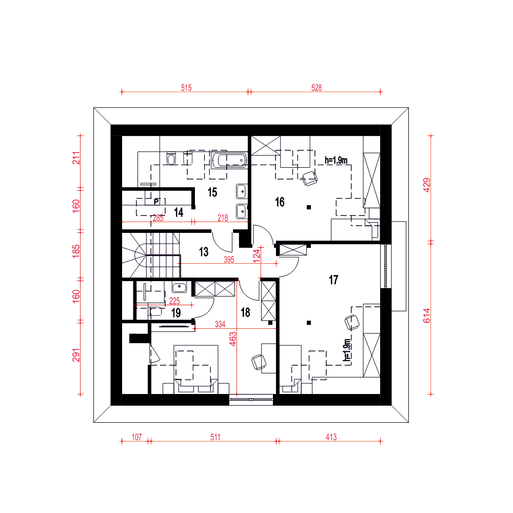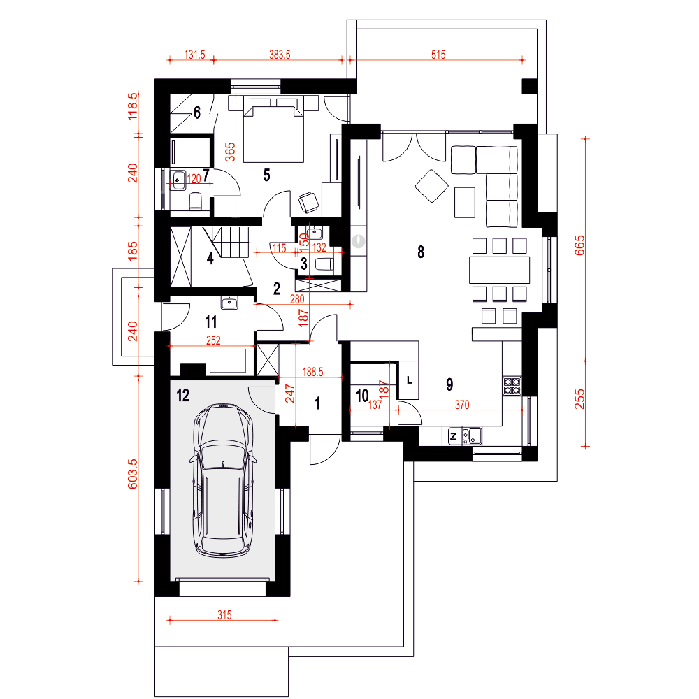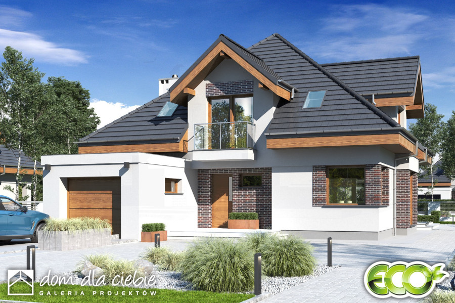 Nowa to projekt domu dla 4-5 os rodziny .Układ funkcjonalny budynku jest optymalny i nastawiony na komfort mieszkańców. Mamy tu podział na strefę ogólnodostępną na parterze i sypialną na piętrze. Salon, kuchnia i jadalnia stanowią jedną przestrzeń wyposażoną w przeszklony wykusz. Na parterze zaprojektowano także dodatkowy pokój z garderobą i łazienką , wc, kotłownię oraz jednostanowiskowy garaż. Na piętrze mamy 3 sypialnie oraz dwie łazienki. Nowa to doskonałe połączenie reprezentacyjnego wizerunku z elegancją i szykiem.