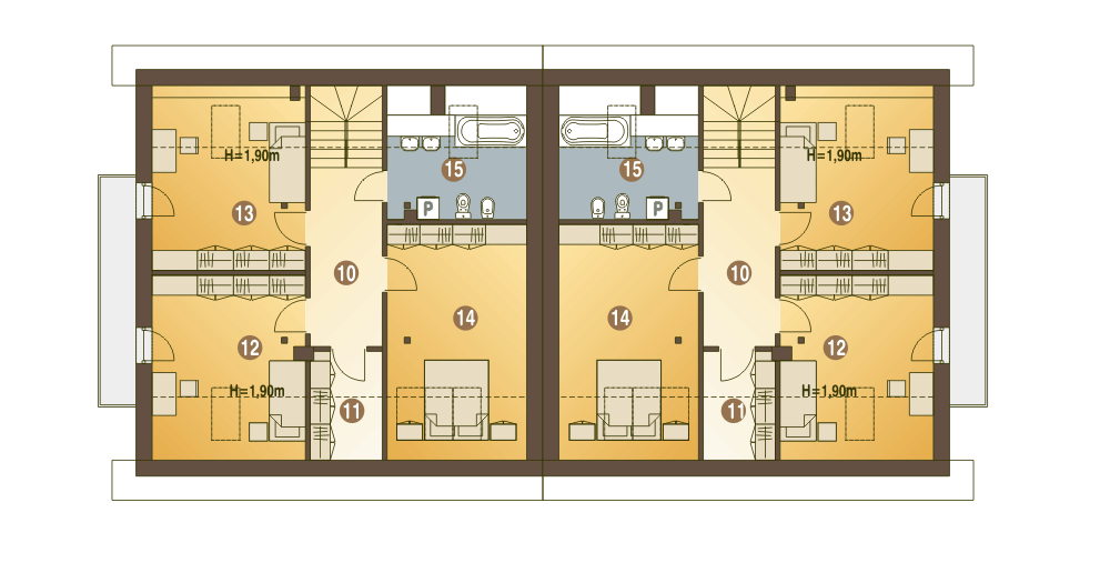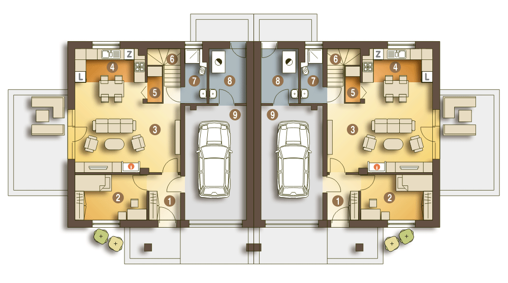 (Uwaga: projekty typu bliźniak oferujemy jako domy dwulokalowe, projekt można zamówić również w zabudowie bliźniaczej) Opis dotyczy jednego segmentu: Nowinka III jest projektem domu wzorowanym na Nowince. Główna zmiana polega na obróceniu połaci dachowych o 90 st i zamienieniu układu szczytowego na kalenicowy względem elewacji frontowej. Projekt tego domu wpisuje się idealnie w trendy współczesnego budownictwa jednorodzinnego. Nowinka III to dzięki prostocie formy ścian i dachu dom bardzo ekonomiczny w użytkowaniu i budowie . Dla ograniczenia kosztów eksploatacji zastosowano dwupołaciowy, dwuspadowy dach oraz skoncentrowano łazienki i kotłownię w jednym pionie. Projekt tego nieskomplikowanego domku zawiera: na parterze salon z otwarta kuchnią ze spiżarnią (pod biegiem schodów), pokój gościnny, wiatrołap, łazienkę. W bryle budynku zamknięto również garaż oraz dużą kotłownię przewidzianą na paliwo stałe. Poddasze obejmuje trzy sypialnie łazienkę i garderobę. Układ funkcjonalny Nowinki III cechuje maksymalne wykorzystanie powierzchni użytkowej.