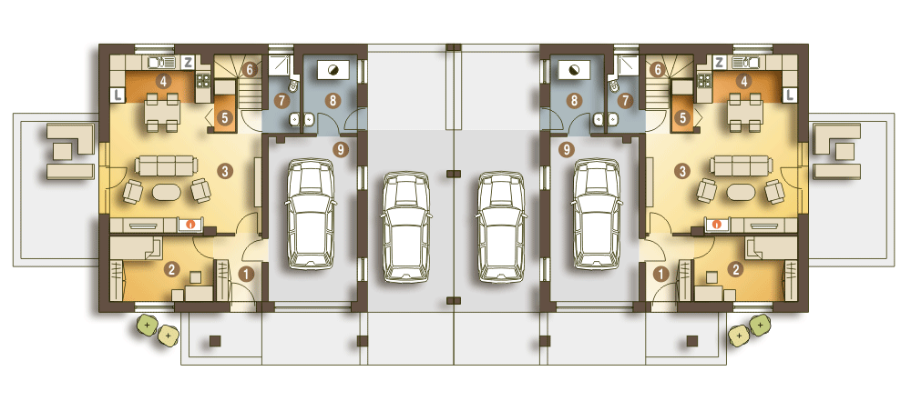 (Uwaga: ten projekt typu bliźniak oferujemy tylko jako dom dwulokalowy). Opis dotyczy jednego segmentu: Nowinka III jest projektem domu wzorowanym na Nowince. Główna zmiana polega na obróceniu połaci dachowych o 90 st i zamienieniu układu szczytowego na kalenicowy względem elewacji frontowej. Projekt tego domu wpisuje się idealnie w trendy współczesnego budownictwa jednorodzinnego. Nowinka III to dzięki prostocie formy ścian i dachu dom bardzo ekonomiczny w użytkowaniu i budowie . Dla ograniczenia kosztów eksploatacji zastosowano dwupołaciowy, dwuspadowy dach oraz skoncentrowano łazienki i kotłownię w jednym pionie. Projekt tego nieskomplikowanego domku zawiera: na parterze salon z otwarta kuchnią ze spiżarnią (pod biegiem schodów), pokój gościnny, wiatrołap, łazienkę. W bryle budynku zamknięto również garaż oraz dużą kotłownię przewidzianą na paliwo stałe. Poddasze obejmuje trzy sypialnie łazienkę i garderobę. Z boku budynku doprojektowano wiatę. Układ funkcjonalny Nowinki III cechuje maksymalne wykorzystanie powierzchni użytkowej.