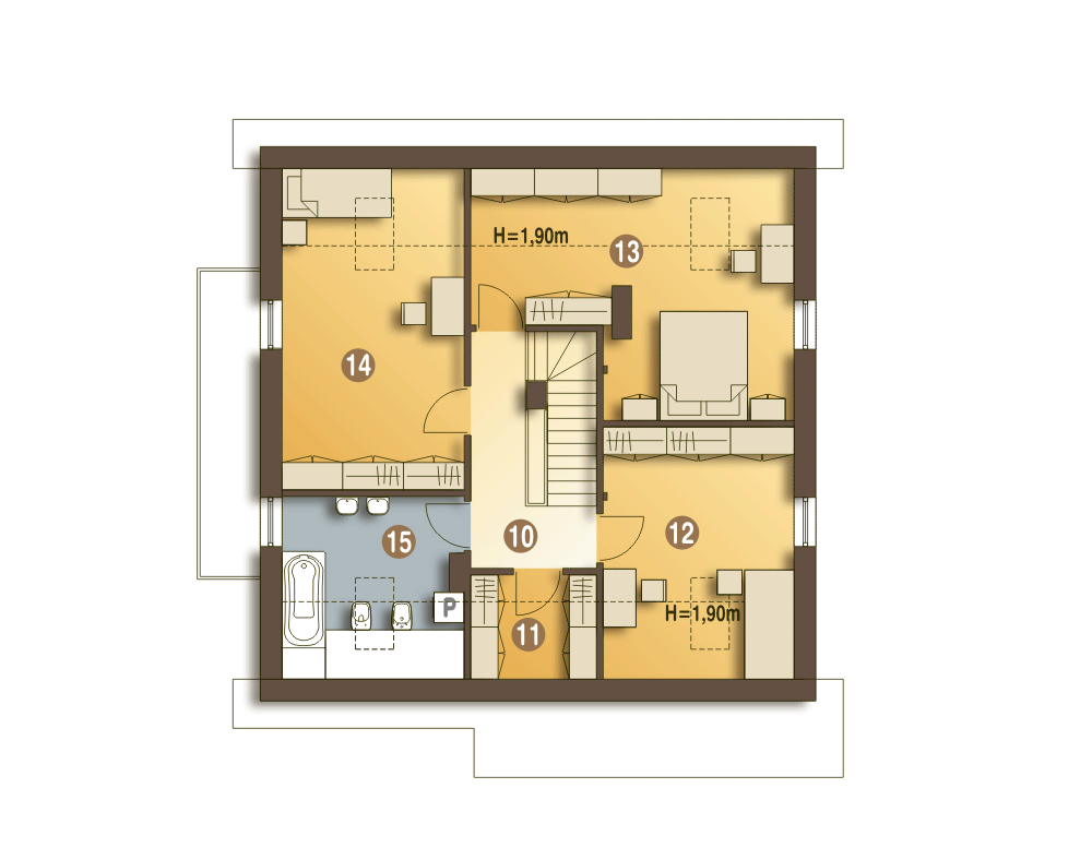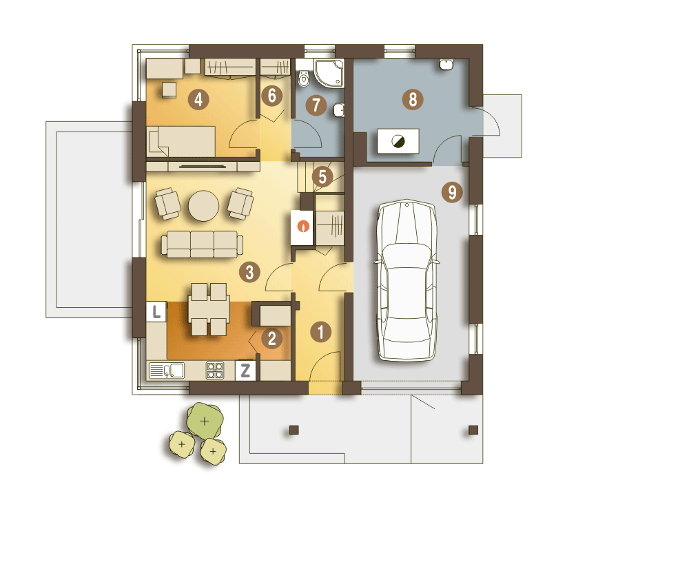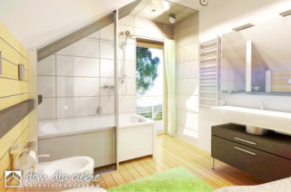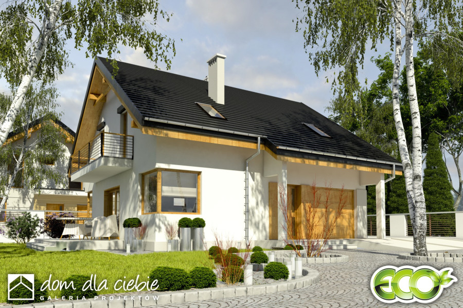 Nowinka IV to kompaktowy projektu domu przeznaczony dla rodziny 2+2 - łączący styl tradycyjny z nowoczesnym. Nowinka IV to projekt ekonomiczny zarówno w budowie jak i eksploatacji ze względu na zwartą bryłę i rozmieszczenie pomieszczeń technologicznych oraz sanitarnych. Bryła domu jest prosta, zwarta i przykryta dwuspadowym dachem o kącie nachylenia połaci dachowych 35 st. Projekt tego klasycznego domu zawiera 5 pokoi wraz z salonem, otwartą kuchnię za spiżarnią, dwie łazienki, garderoby pod schodami oraz przy pokoju na parterze, miejsce na nowoczesny centralnie zlokalizowany kominek oraz dużą kotłownię za garażem na dowolny piec CO. W bryle budynku zawarty jest garaż jednostanowiskowy.