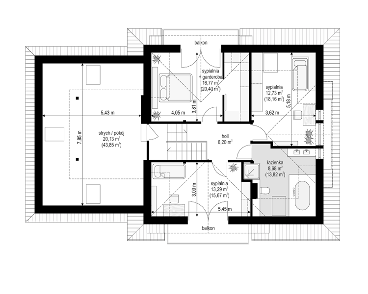 Widziałam już podstawowy wariant tego domu i podoba mi się to, że na poddaszu nie dość że są zaadaptowane całkiem spore sypialnie, to jeszcze prawie każda z nich ma dostęp do balkonu. Dla mnie to bardzo fajne rozwiązanie bo lubię wypić sobie kawkę na zewnątrz, zwłaszcza w te ciepłe poranki oczywiście. Archido się spisuje na medal widzę więc naprawdę, oby tak dalej...