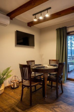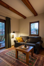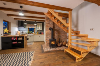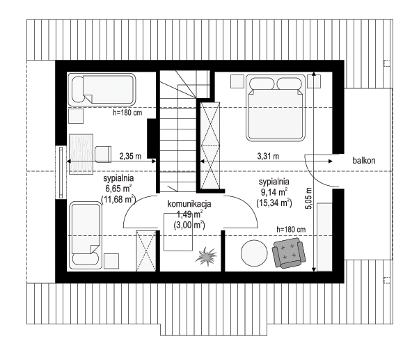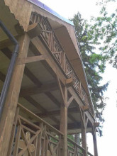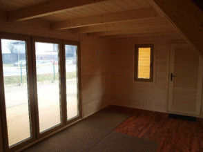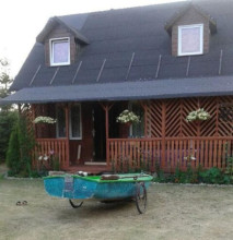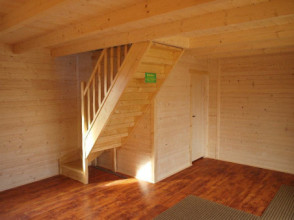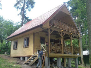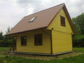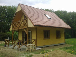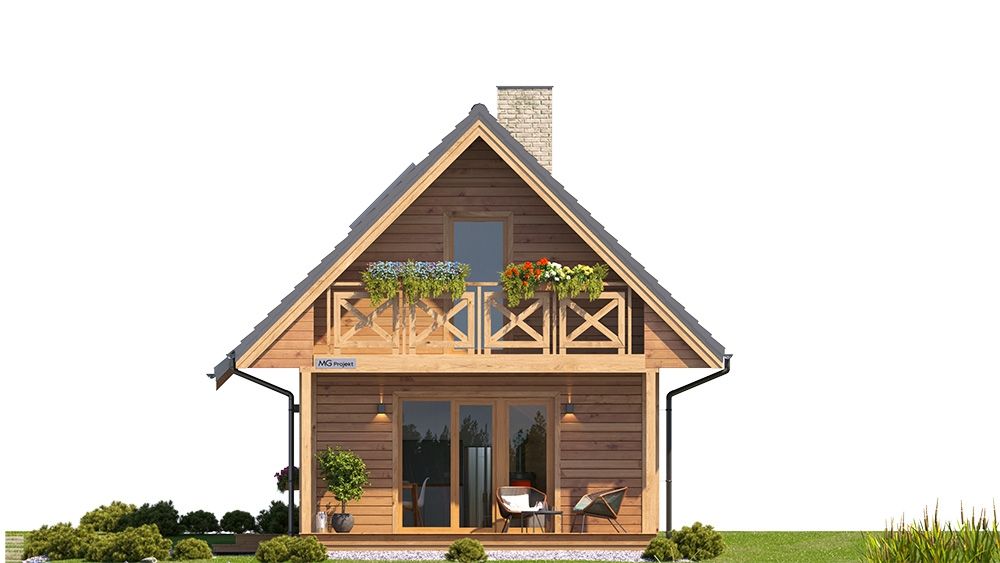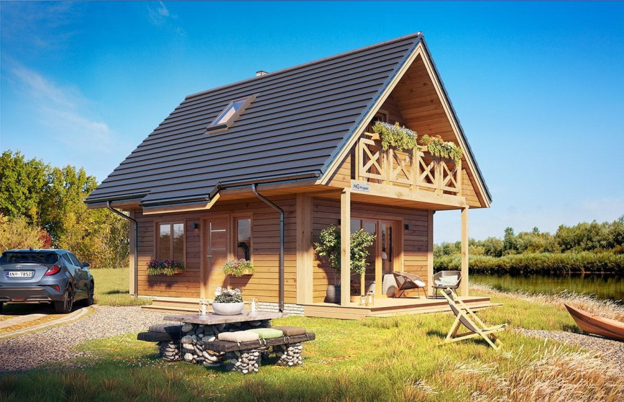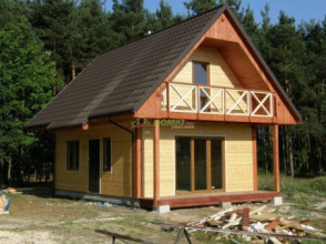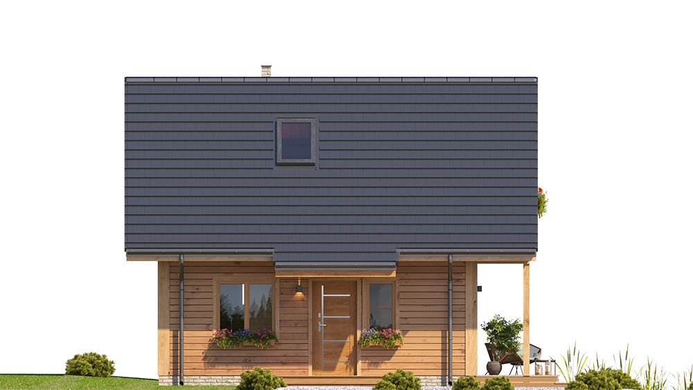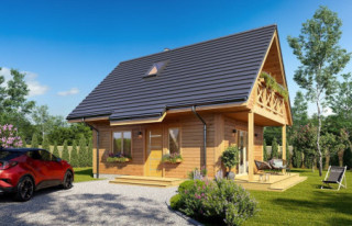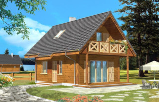 Projekt domu Sosenka Drewniana to mały zgrabny domek. Może pełnić funkcję letniskowego, ale również całorocznego domu. Jego zaletami są właściwe proporcje nadające estetyczny wygląd budynku, funkcjonalne wnętrze oraz prosta, tania w budowie konstrukcja. Pracownia posiada wiele wersji Sosenek ze zmienionymi gabarytami - z balkonem i tarasem z boku domu (Sosenka 4), przedłużony o 0,5 m - bez balkonu, przedłużony o 1,5 m z pomieszczeniem gospodarczym przy kuchni (Sosenka 3), z gankiem wejściowym (Sosenka 2), czy powiększony wariant domu (Sosenka 5). Projekt domu Sosenka Drewniana dostępny jest również w wersji odbicia lustrzanego, oraz dwóch wersjach wariantowych - z gankiem (Projekt domu Sesenka Drewniana Wariant B) i w wersji poszerzonej (Projekt domu Sesenka Drewniana Wariant D).