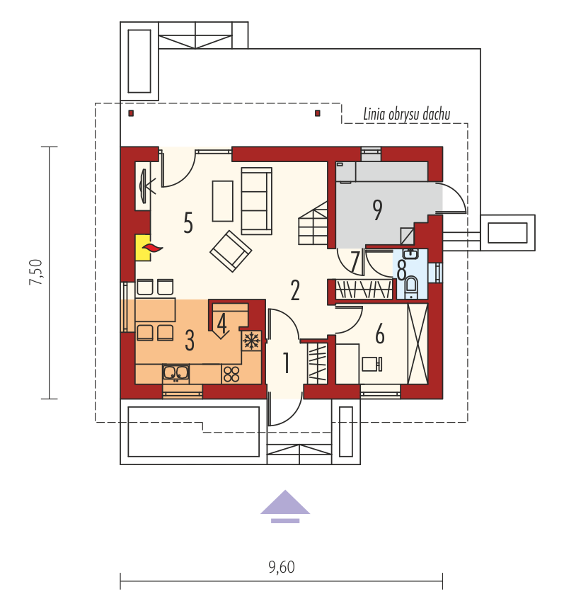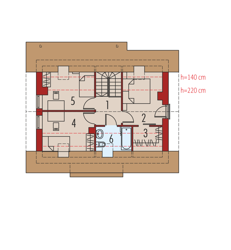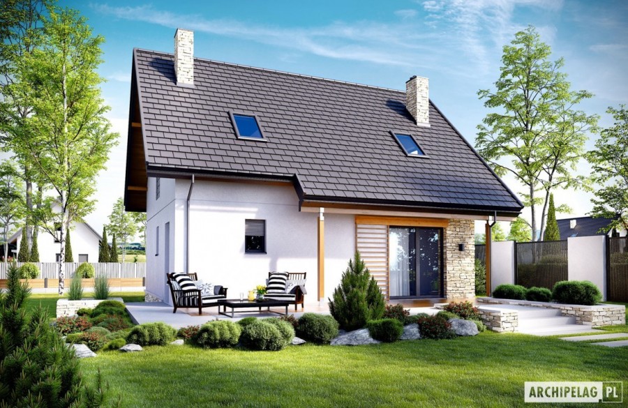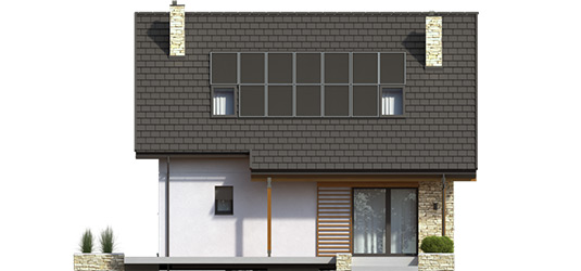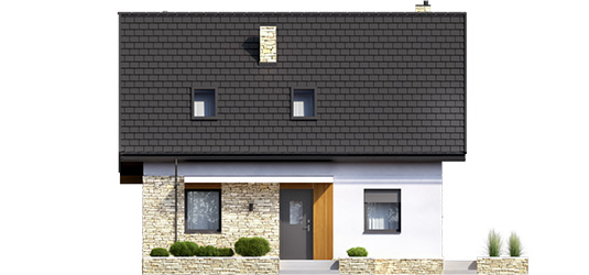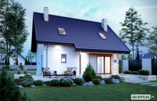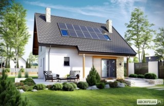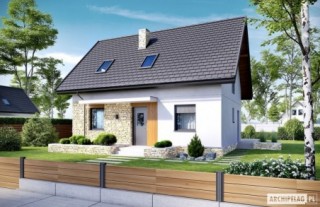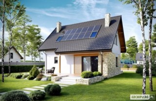 Charakterystyka: Dom parterowy z poddaszem użytkowym, niepodpiwniczonyPrzeznaczenie: Dom dla 3-5-osobowej rodzinyTechnologia i konstrukcja:Fundamenty: ławy, bloczki betonowe 24 cm, ocieplenie styropian 15 cmŚciany zewnętrzne: murowane, dwuwarstwowe, beton komórkowy firmy Solbet 24 cm, ocieplenie 20 cmStrop: międzypiętrowy gęstożebrowy TerivaDach: konstrukcja drewniana, ocieplenie wełna mineralna 30 cm, dachówka ceramiczna płaska Bergamo firmy Röben w kolorze szarym matowymInne: schody wewnętrzne drewnianeRozwiązania instalacyjne:Ogrzewanie: kocioł gazowy kondensacyjny, rozprowadzenie ciepła: grzejnikiWentylacja: grawitacyjnaWykończenie:Elewacje: tynk cienkowarstwowy mineralny w kolorze TO-PA001 z palety firmy Termo Organika i okładzina kamiennaStolarka: drewniana, PVC lub aluminiowa, drzwi wejściowe firmy Hörmann, rolety zewnętrzne w systemie CleverBox firmy BeCleverOkna połaciowe: rozwiązania technologiczne firmy FAKROOtoczenie: system tarasowy ProDeck - deska kompozytowa Terra w kolorze platyna i orzechWersje - zapytaj o dostępność:- Oli – taki sam układ funkcjonalny, dach o kącie nachylenia 45°, inne zadaszenie wejścia i wykończenie elewacji, bez garażu- Odbicie lustrzane do każdej wersjiIstnieje techniczna możliwość:- podpiwniczenia budynku- wykonania budynku w technologii szkieletowejAtuty projektu okiem architekta:- Bryła o bardzo dobrych parametrach cieplnych- Funkcjonalne i ergonomiczne wnętrze z podziałem na strefę dzienną na parterze i nocną na poddaszu- Praktyczna spiżarnia przy kuchni- Funkcjonalna garderoba na parterze- Trzy wygodne sypialnie, w tym główna z własną garderobą- Wygodne zadaszenie nad wejściem do budynku oraz od strony ogrodu jako osłona przed wiatrem i śniegiem