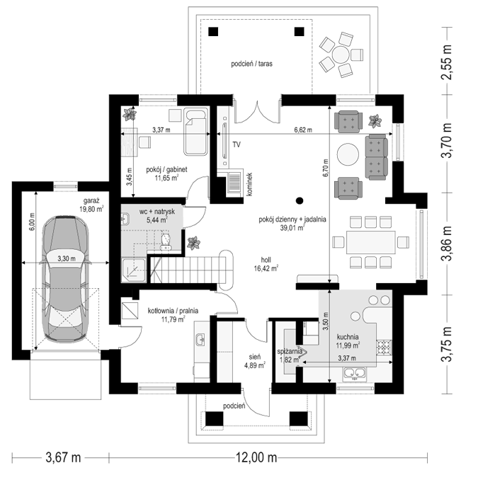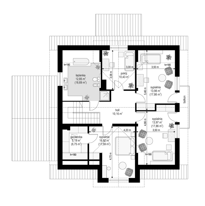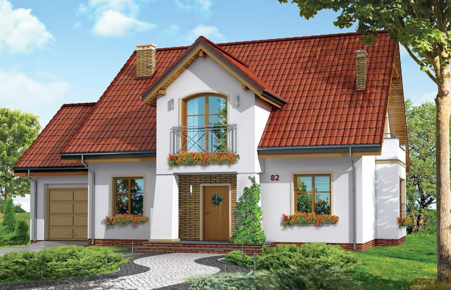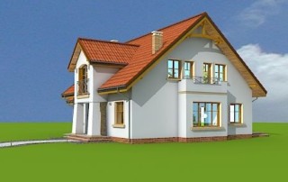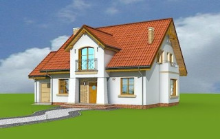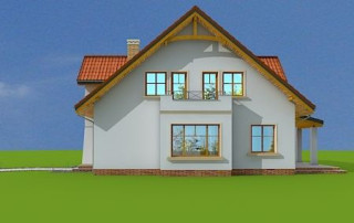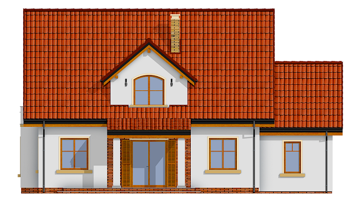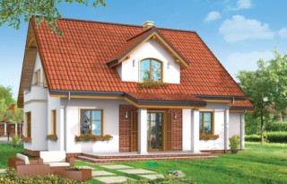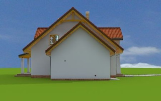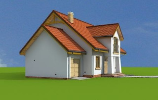 Projekt domu Gagatek to dom jednorodzinny dla rodziny 4- 6-osobowej. Parterowy budynek z poddaszem użytkowym, z dobudowanym garażem, przekryty dachami dwuspadowymi. Rzut parteru zbudowano na planie kwadratu z jasnym podziałem ścianami konstrukcyjnymi na dziewięć mniejszych części. Zasada taka daje bardzo czytelny, prosty i czysty układ konstrukcyjny budynku, co ułatwi realizację. W projekcie domu Gagatek także architektura zewnętrzna podporządkowana jest zasadzie symetrii - jedynym od niej odstępstwem jest dobudowany z boku garaż. Tradycyjny styl domu, z podcieniem wejściowym i kolumnami, z centralnie osadzonymi lukarnami, oraz z bocznym wykuszem jadalni, łączy się tutaj z zastosowanymi nowoczesnymi materiałami. Całość daje uniwersalny, ponadczasowy, a jednocześnie bezpretensjonalny wyraz. We wnętrzu domu, na parterze zaprojektowana została duża przestrzeń dzienna z salonem, jadalnią, holem i częściowo otwartą kuchnią. Na parterze przewidziano również miejsce na osobny pokój - gabinet lub sypialnię, oraz kotłownię i garaż. Na poddaszu zmieszczono aż cztery sypialnie, w tym jedną sypialnię rodziców z garderobą, oraz wygodną łazienkę. Pracownia posiada wersję projektu domu Gagatek w odbiciu lustrzanym.