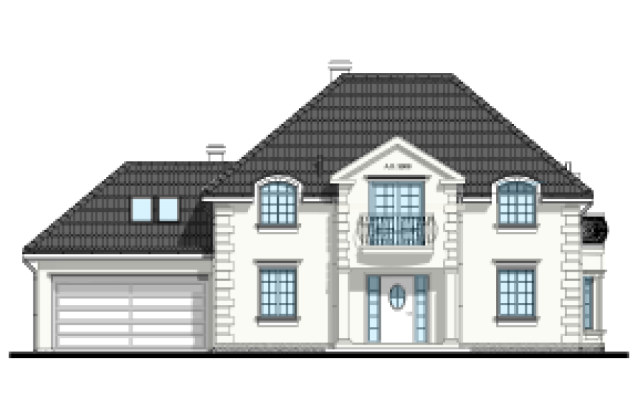Orchidea to uroczy, piętrowy domek jednorodzinny, stworzony z myślą o cztero-pięcioosobowej rodzinie. Prostokątna bryła budynku przekryta jest czterospadowym dachem, a wykusze, daszki, oraz wystający poza obrys ścian garaż urozmaicają wygląd zewnętrzny domu. Dzięki dopracowanemu detalowi i właściwym proporcjom udało się podkreślić elegancję tej miejskiej willi, zachowując jednocześnie spokój, umiar i harmonię. Wnętrze domu zostało zdominowane przez otwartą przestrzeń dzienną na parterze, oraz pokoje sypialne na piętrze. Parter, to prócz dużego salonu z aneksem jadalnym, holem i półotwartą kuchnią, również obszerny przedsionek, garaż na dwa samochody, kotłownia, oraz dodatkowy pokój - na przykład gabinet. W projekcie na piętrze, udało się zaprojektować osobny apartament rodziców - z wła