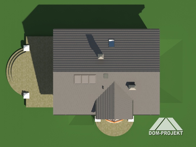 Dom z podpiwniczeniem. Duży salon z kominkiem, wyjściem na balkon i przejściem do kuchni. Kuchnia, łazienka, wiatrołap i komunikacja. Na poddaszu trzy pokoje, łazienka, komunikacja i balkon. W piwnicach kotłownia, pralnia, dwie piwnice i komunikacja. Prosta bryła budynku i dach dwuspadowy sprzyjają szybkiej i taniej budowie i niskim kosztom eksploatacji.