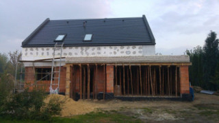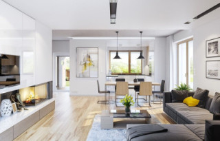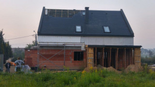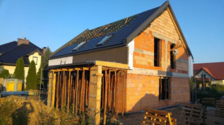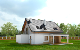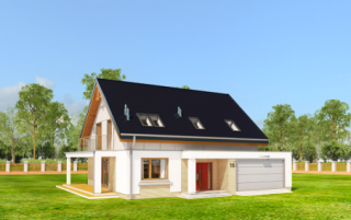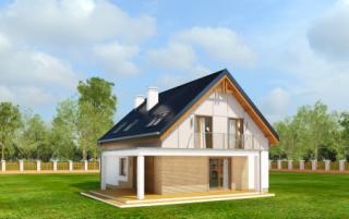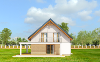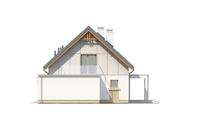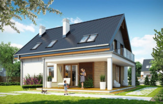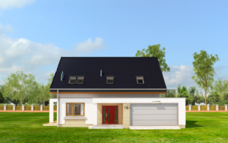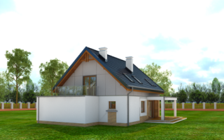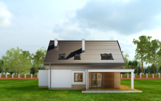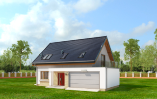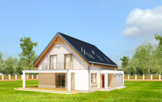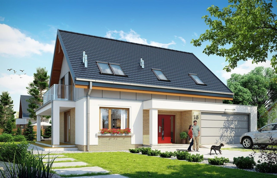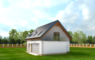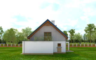 Projekt domu Albatros 2 jest wersją wariantową popularnego projektu „Albatros” z podwójnym garażem. Jest to prosty w budowie, niedrogi dom z poddaszem użytkowym dla 4- 5-osobowej rodziny. Bryła budynku została zaprojektowana na planie prostokąta - do głównej bryły dobudowany jest częściowo wchodzący w nią garaż na dwa auta. Poddasze wieńczy symetryczny dwuspadowy dach. Projekt podporządkowano połączeniu ekonomicznych i funkcjonalnych rozwiązań, z nowoczesną i ciekawą estetyką budynku. Dom ma w sobie „to coś”: ciekawie dobrane materiały, dobre proporcje brył, właściwą wielkość okien, no i przede wszystkim – funkcjonalne, rozsądnie zaplanowane wnętrze. Parter domu, to przestrzeń dzienna, z wygodnym salonem, centralnym holem z ozdobnymi schodami, częściowo otwartą na salon kuchnią, oraz dodatkowy pokój - gabinet lub sypialnia gościnna i część gospodarcza, czyli garaż i kotłownia. Na poddaszu, dzięki wysokim ściankom kolankowym, mieszczą się trzy przestronne sypialnie, w tym sypialnia rodziców z osobną łazienką i garderobą. Dodatkowo przewidziano tu też miejsce na pralnię – ewentualnie schowek. „Albatros” mimo niewielkiej powierzchni jest przestronny i wygodny i zapewni komfortowe warunki do życia nawet licznej rodzinie. Energooszczędne rozwiązania – dobre docieplenia, zwarta bryła budynku - pozwolą ograniczyć koszty przyszłej eksploatacji, a prostota konstrukcji domu zapewni mniej stresów podczas budowy. Zapraszamy do zapoznania się z pełną ofertą pracowni MG Projekt: projekt domu Albatros