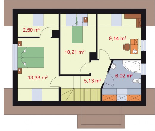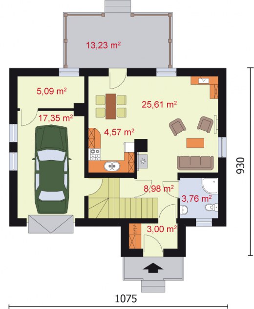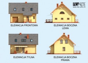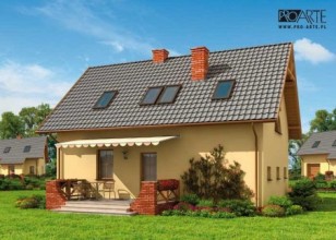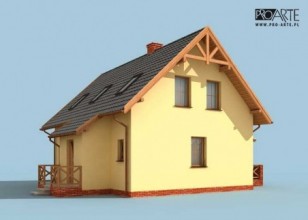 Swój klasyczny wygląd dom ten zawdzięcza prostym i subtelnym kształtom, które dodatkowo wywołują multum pozytywnych emocji oraz szeroki uśmiech na twarzach zadowolonych właścicieli. Wnętrze domu prezentuje się niebywale dzięki ekskluzywnym udogodnieniom, które na pewno zachwycą niejedną parę oczu. Oprócz nowoczesnego pomieszczenia 3 w 1 (salon + kuchnia + jadalnia) na parterze pojawia się nietypowe przejście do garażu umieszczone dyskretnie pod schodami; ułatwia ono szybkie przemieszczanie się z części mieszkalnej do garażowej, a tym samym nie zakłóca harmonii panującej wewnątrz budynku. O utrzymanie ciepłej atmosfery w tym przytulnym gniazdku zadba solidny kominek, znajdujący się w dużym pokoju, oraz kotłowni