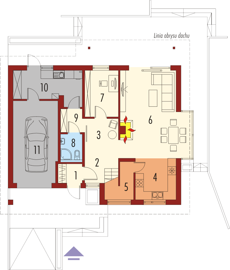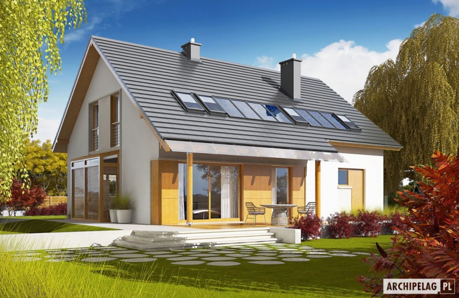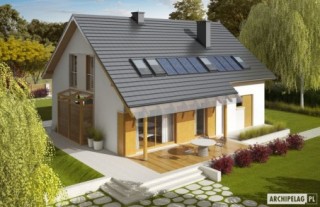 Dom z Kolekcji BiancoErgonomia – Ekonomia – Funkcjonalność – Czysta forma – GlamourKolekcja BiancoDomy z Kolekcji Bianco zostały zaprojektowane z najwyższą troską o ergonomię i komfort użytkowy. W każdym projekcie z Kolekcji Bianco zminimalizowano ilość pionów instalacyjnych. Zgrupowanie w bliskim sąsiedztwie pomieszczeń, do których konieczne jest doprowadzenie wody, kanalizacji oraz systemu wentylacji pozwala ograniczyć koszty związane z wykonaniem instalacji wewnętrznych oraz dodatkowych pionów wentylacyjnych. W domach z Kolekcji Bianco strefa dzienna jest wyraźnie oddzielona od części gospodarczej i sanitarnej, co podnosi komfort użytkowy, a dodatkowo akcentuje reprezentacyjny charakter. Strefę nocną zaprojektowano z dbałością o jej intymny charakter. W Kolekcji Bianco dominuje ascetyczna wizja piękna – prosta, czysta, doskonała. Charakterystyka: Dom parterowy z poddaszem użytkowym, niepodpiwniczony, z garażem jednostanowiskowym Przeznaczenie: Dom dla 4-5 osobowej rodzinyTechnologia i konstrukcja: Ściany zewnętrzne: murowane, Strop: gęstożebrowy Dach: konstrukcja drewniana, dachówka cementowa płaska Inne: schody wewnętrzne drewnianeRozwiązania instalacyjne: Ogrzewanie: kocioł gazowy, rozprowadzenie ciepła: grzejniki Wentylacja: grawitacyjna Wykończenie: Elewacje: tynk mineralny i okładzina kamienna oraz drewniana, cokół kamienny Stolarka: drewniana lub PCV Wersje w serii Pablo - zapytaj o dostępność: - Pablo – wersja podstawowa - Pablo II – podobny układ funkcjonalny - Pablo II reco – instalacje energooszczędne firmy Vaillant: pompa ciepła, wentylacja mechaniczna z rekuperacją, system fotowoltaiczny oraz ogrzewanie podłogowe firmy Purmo - wszystkie wersje o podobnym układzie funkcji i podobną propozycją wykończenia elewacji - wszystkie wersje z dwoma wariantami garaży: garażem jedno- i dwustanowiskowym - odbicie lustrzane do każdej wersjiWszystkie wersje domów możliwe w dwóch standardach/wariantach instalacyjnych: - ENERGO: kocioł gazowy kondensacyjny, grzejniki, wentylacja grawitacyjna, OZE: kolektory słoneczne - ENERGO PLUS: pompa ciepła, ogrzewanie podłogowe, wentylacja mechaniczna, OZE: kolektory słoneczne lub panele fotowoltaiczneIstnieją techniczne możliwości wykonania zmian: - podpiwniczenia budynku - wykonania budynku w technologii szkieletowej - dokonania zmian funkcjonalnych wg indywidualnych wymagań