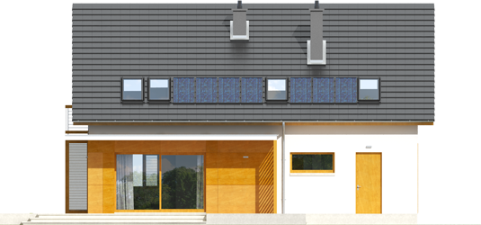 Dom z Kolekcji BiancoErgonomia – Ekonomia – Funkcjonalność – Czysta forma – GlamourKolekcja BiancoDomy z Kolekcji Bianco zostały zaprojektowane z najwyższą troską o ergonomię i komfort użytkowy. W każdym projekcie z Kolekcji Bianco zminimalizowano ilość pionów instalacyjnych. Zgrupowanie w bliskim sąsiedztwie pomieszczeń, do których konieczne jest doprowadzenie wody, kanalizacji oraz systemu wentylacji pozwala ograniczyć koszty związane z wykonaniem instalacji wewnętrznych oraz dodatkowych pionów wentylacyjnych. W domach z Kolekcji Bianco strefa dzienna jest wyraźnie oddzielona od części gospodarczej i sanitarnej, co podnosi komfort użytkowy, a dodatkowo akcentuje reprezentacyjny charakter. Strefę nocną zaprojektowano z dbałością o jej intymny charakter. W Kolekcji Bianco dominuje ascetyczna wizja piękna – prosta, czysta, doskonała. Charakterystyka: Dom parterowy z poddaszem użytkowym, niepodpiwniczony, z garażem jednostanowiskowym Przeznaczenie: Dom dla 4-5 osobowej rodzinyTechnologia i konstrukcja: Ściany zewnętrzne: murowane, Strop: gęstożebrowy Dach: konstrukcja drewniana, dachówka płaska Inne: schody wewnętrzne drewnianeRozwiązania instalacyjne: Ogrzewanie: kocioł gazowy, rozprowadzenie ciepła: grzejniki Wentylacja: grawitacyjna Wykończenie: Elewacje: tynk mineralny i okładzina kamienna oraz drewniana, cokół kamienny Stolarka: drewniana lub PCV Wersje w serii Pablo - zapytaj o dostępność: - Pablo – wersja podstawowa - Pablo II – podobny układ funkcjonalny - Pablo II reco – instalacje energooszczędne firmy Vaillant: pompa ciepła, wentylacja mechaniczna z rekuperacją, system fotowoltaiczny oraz ogrzewanie podłogowe firmy Purmo - wszystkie wersje o podobnym układzie funkcji i podobną propozycją wykończenia elewacji - wszystkie wersje z dwoma wariantami garaży: garażem jedno- i dwustanowiskowym - odbicie lustrzane do każdej wersjiWszystkie wersje domów możliwe w dwóch standardach/wariantach instalacyjnych: - ENERGO: kocioł gazowy kondensacyjny, grzejniki, wentylacja grawitacyjna, OZE: kolektory słoneczne - ENERGO PLUS: pompa ciepła, ogrzewanie podłogowe, wentylacja mechaniczna, OZE: kolektory słoneczne lub panele fotowoltaiczneIstnieją techniczne możliwości wykonania zmian: - podpiwniczenia budynku - wykonania budynku w technologii szkieletowej - dokonania zmian funkcjonalnych wg indywidualnych wymagań