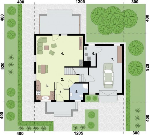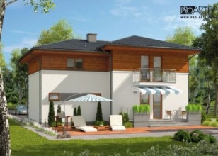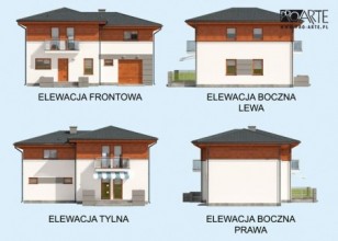 Projekt domu mieszkalnego parterowego z poddaszem użytkowym. Projekt składa się z części architektonicznej, konstrukcyjnej, wewnętrznych instalacji wod.-kan, c. o. i elektrycznej. W projekcie załączone są podstawowe zestawienie stali, drewna i stolarki okienno-drzwiowej. Do projektu dołączamy bezpłatną zgodę na wprowadzenie zmian, oświadczenie projektantów o wykonaniu projektu zgodnie z obowiązującymi normami i przepisami oraz kserokopie uprawnień projektantów wraz z aktualnym wpisem do izby. W przypadku zamówienia projektu w technologii lekkiej, drewnianej konstrukcji szkieletowej, powierzchnia użytkowa budynku jest o około 7% większa.