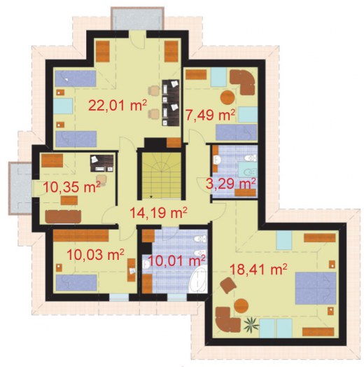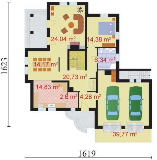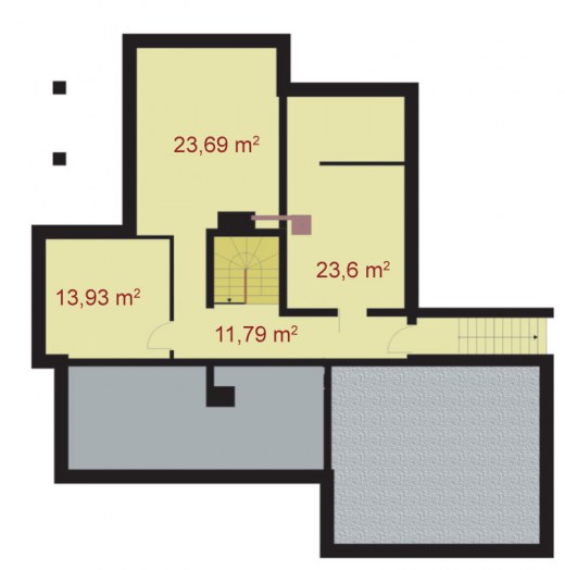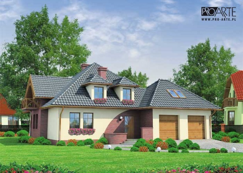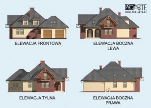 "Paola" Klinkier, który zdobi dom nadaje mu głębię i tworzy kolorystyczny kontrast elewacji; dodatkowo podkreśla poszczególne pomieszczenia i delikatnym łukiem wskazuje wejście do budynku. Paola posiada piwnicę, do której można dostać się na dwa sposoby- od wewnątrz i od zewnątrz. Zejście zewnętrzne znajduje się na tyłach budynku (za garażem)- jest to udogodnienie zastosowane wyłącznie w tym projekcie! Smukłe kolumny (lewe lico budynku) oraz pionowe okna na poddaszu nadają całej budowli wyjątkową aurę oraz oryginalną sylwetkę. Na parterze i na piętrze znajdują się liczne pomieszczenia użytkowe, jak np. kuchnia, salon, jadalnia, łazienka, ale za sprawą pięciu sypialni i garażu z dwoma stanowiskami na samochody dom ten staje się funkcjonalny i prorodzinny. Jest on jedyny w s