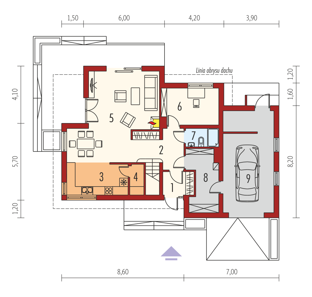 Standard MULTI-COMFORT Dom spełnia standard MULTI-COMFORT Grupy Saint-Gobain.Komfort rozumiany jako wpływ środowiska, w którym mieszkamy na nasze samopoczucie i zdrowie. Dom realizuje tę ideę za pomocą właściwego połączenia wszystkich elementów funkcjonujących w budynku – odpowiedniego oświetlenia, właściwej wentylacji, konstrukcji ścian, dachu oraz instalacji, przy jednoczesnej trosce o środowisko naturalne. Najwyższą jakość produktów Saint-Gobain zapewniają marki: ISOVER, Rigips, Ecophon, PAM, Weber, Glass oraz Glasssolution. Charakterystyka: Dom parterowy z poddaszem użytkowym, niepodpiwniczony, z garażem jednostanowiskowym Przeznaczenie: Dom dla 4-5 osobowej rodziny Technologia i konstrukcja: Ściany zewnętrzne: dwuwarstwowe murowane, docieplenie 25cm Strop: międzypiętrowy gęstożebrowy Dach: konstrukcja drewniana, ocieplenie wełna mineralna, dachówka płaska lub inna o podobnych parametrach Inne: schody wewnętrzne drewnianeRozwiązania instalacyjne: Ogrzewanie: kocioł gazowy, rozprowadzenie ciepła: grzejniki Wentylacja: grawitacyjna Wykończenie: Elewacje: tynk mineralny, okładzina drewniana Stolarka: drewniana lub PCV, drzwi wejściowe i brama garażowa firmy Hörmann. Rolety zewnętrzne naokienne.Wersje -zapytaj o dostępność: - Patryk Multi-Comfort – bez garażu i z garażem dwustanowiskowym - Patryk – wersja standardowa, zbliżona powierzchnia użytkowa, różne wersje garaży - Patryk II – mniejsza powierzchnia użytkowa, różne wersje garaży - Patryk III – powierzchnia użytkowa zbliżona do wersji I, rozwiązania technologiczne firmy Rigips, ocieplenia w standardzie energo, inne wykończenie elewacji, różne wersje garaży - Patryk IV – większa powierzchnia użytkowa, podobny układ funkcjonalny, dach bez okapów, ocieplenia w standardzie energo, inne wykończenie elewacji, różne wersje garaży - Każdy budynek o innych wymiarach zewnętrznych - Odbicie lustrzane dla wszystkich wersjiIstnieje techniczna możliwość: - podpiwniczenia budynkuAtuty projektu okiem architekta:- Bryła sprzyjająca energooszczędności, zminimalizowane ryzyko występowania mostków termicznych- Okna o niskim współczynniku przenikania ciepła- Bryła sprzyjająca energooszczędności, zminimalizowane ryzyko występowania mostków termicznych- Prosta bryła budynku sprzyja oszczędności energii niezbędnej do ogrzania i utrzymania ciepła w budynku- Ergonomiczny i funkcjonalny układ wnętrz - Nowoczesny styl wykończenia – atrakcyjny wygląd zewnętrzny- Spiżarnia przy kuchni- Praktyczny gabinet- Reprezentacyjny, przeszklony salon z kominkiem- Główna sypialnia z dużą garderobą- Atrakcyjny, częściowo zadaszony taras- Ciekawie zaaranżowana strefa wejściowa- Duża kotłownia, która pozwala na zastosowanie dowolnego rodzaju ogrzewania