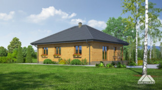 Dom parterowy w konstrukcji szkiel drewnianego.. Duży salon z aneksem kuchennym, kominkiem i wyjściem na taras. Trzy pokoje, łazienka, wc z pralką, wiatrołap i korytarz. Wyjście na poddasze schodami rozkładanymi. Na poddaszu strych.