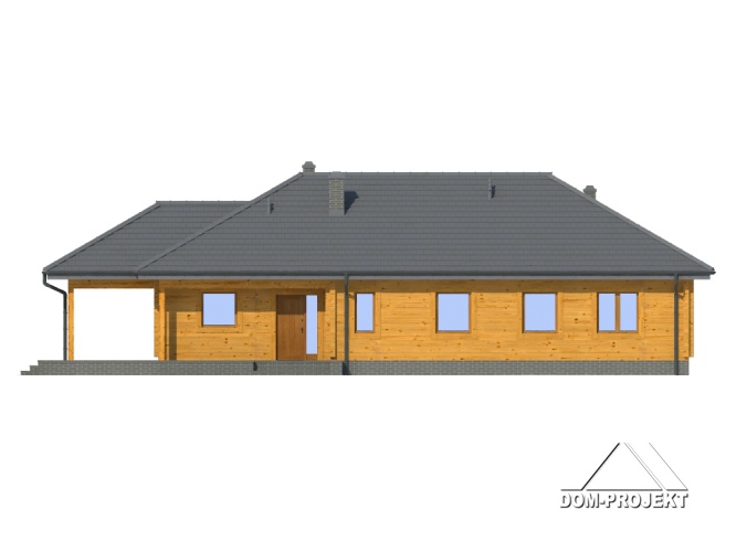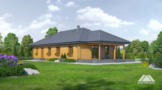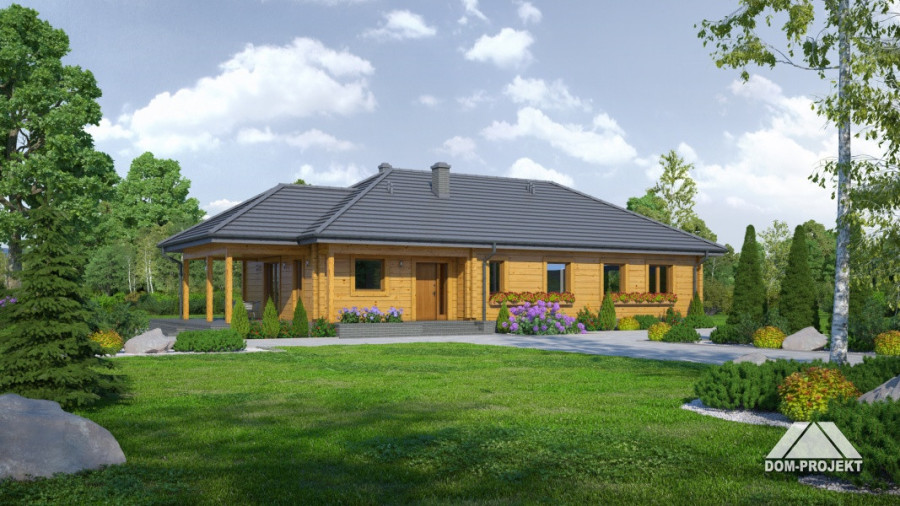 Dom z bali, parterowy z dwoma samodzielnymi mieszkaniami. Mieszkanie główne: duży salon z aneksem kuchennym, kominkiem i wyjściem na zadaszony taras. Dwa pokoje, łazienka, wc, wiatrołap i korytarz. W drugim mieszkaniu: salon z aneksem kuchennym, dwa pokoje, łazienka i korytarz. Dostęp do strychu schodami rozkładanymi. Strych nieużytkowy.