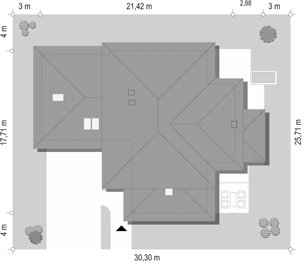 Niewielki dom z poddaszem użytkowym o prostej konstrukcji, przeznaczony dla 4-5 osobowej rodziny. Na parterze zlokalizowano jednoprzestrzenną część dzienną (kuchnia ze spiżarnią, jadalnia i pokój dzienny), gabinet, wc z prysznicem i duże pomieszczenie gospodarcze. Istnieje możliwość wydzielenia kuchni. Na poddaszu znajdują się trzy sypialnie, schowek i łazienka. Projekt dostępny w wersji z garażem dwustanowiskowym - Planeta II oraz w wersji bez garażu - Planeta III. Projekt może być wykorzystany do zabudowy bliźniaczej.