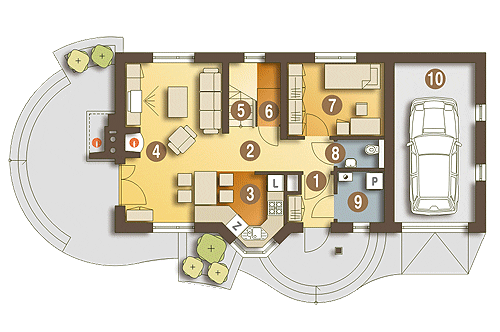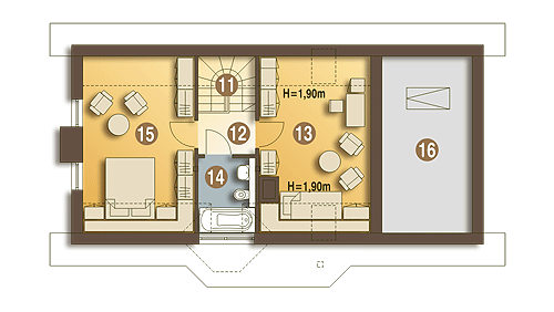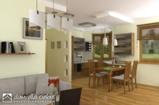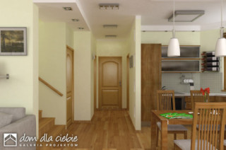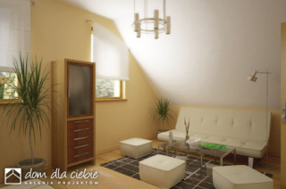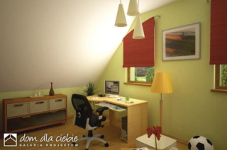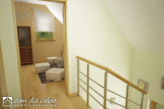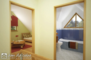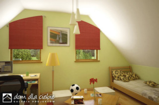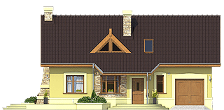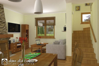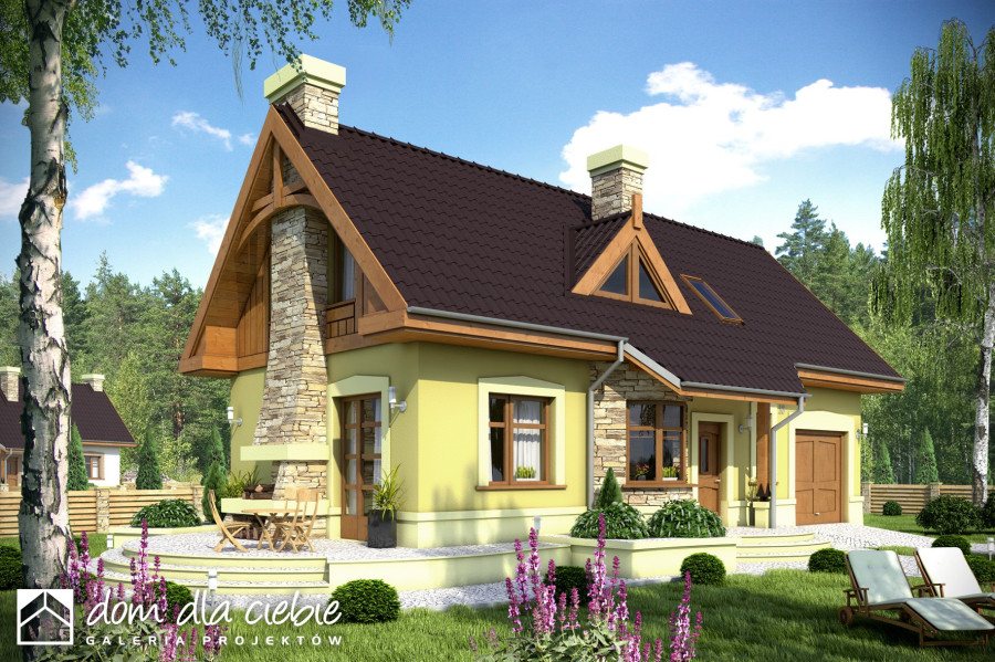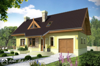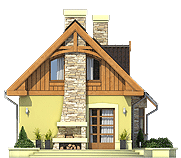 Sympatyczny, niewielki dom piętrowy dla 3 osobowej rodziny, z garażem jednostanowiskowym. Parter jako część ogólna obejmuje: doświetlony z trzech stron pokój dzienny z kominkiem oraz miejscem do spożywania posiłków, kuchnię, pokój sypialny - od strony ogrodowej, wc oraz dostępną z wiatrołapu pralnię + c.o. Piętro to część prywatna, obejmująca: dwie sypialnie oraz wspólną łazienkę. Budynek posiada atrakcyjny zewnętrzny kominek od strony ogrodowej. Dom z powodzeniem może być wykorzystany jako rekreacyjny - całoroczny... Sprawdź inne projekty domów - Zapraszamy !
