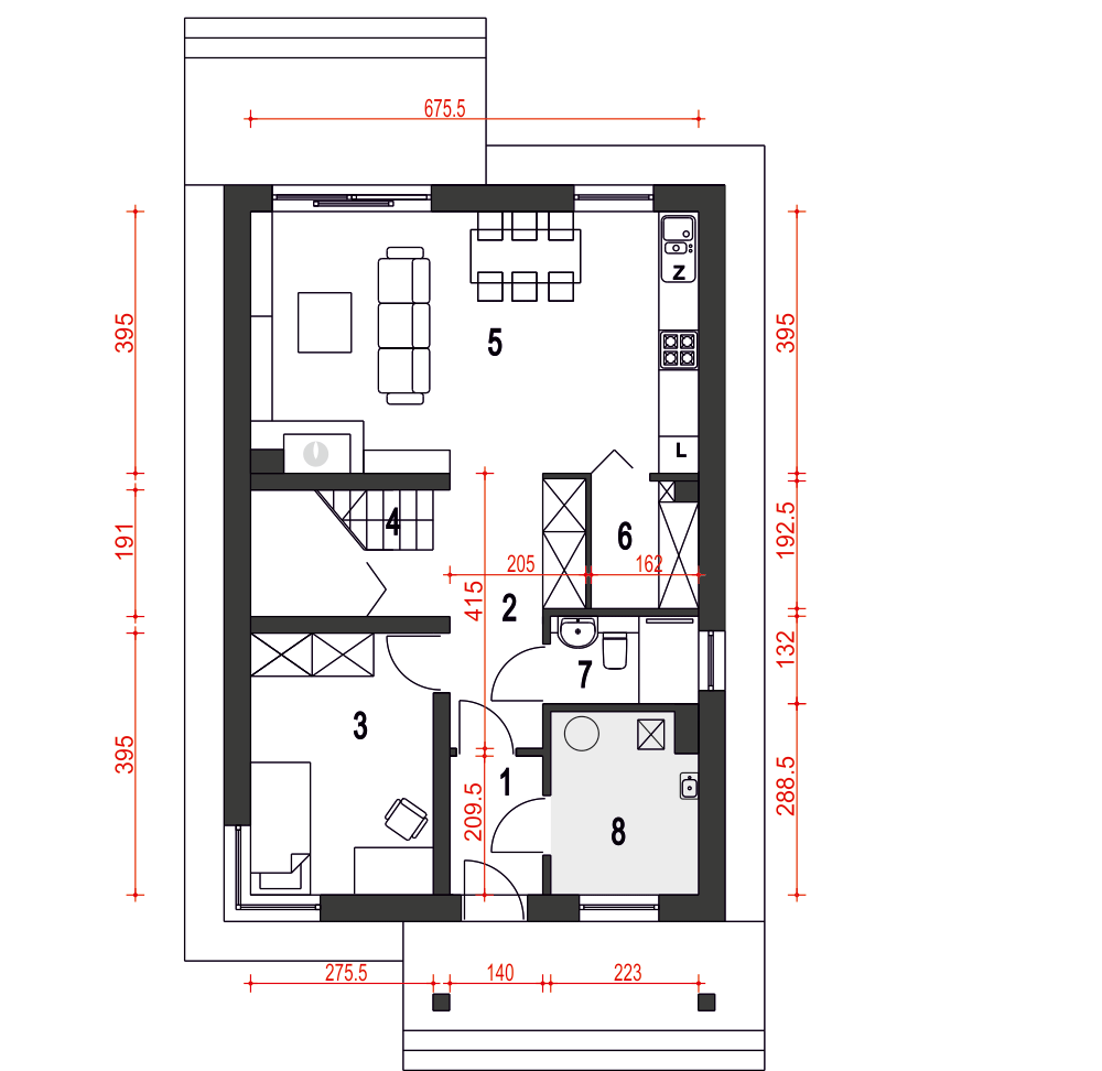 Agat II to jednorodzinny dom wpisujący się idealnie w ofertę budynków tanich i ekonomicznych w budowie i w eksploatacji, co udaje się osiągnąć poprzez optymalnie zaprojektowaną funkcję i zwartą bryłę. Agat II to dom nieduży, nowoczesny i wygodny dla 4-5 osobowej rodziny. Strefa wejściowa do budynku przewiduje duży wiatrołap wyposażony w solidne szafy wnękowe z dostępem do pomieszczenia technicznego z piecem na paliwo stałe. Na parterze zaprojektowano jasny, praktyczny salon połączony z kuchnią , dodatkowy pokój, łazienkę oraz spiżarnię i garderobę wygospodarowaną w przestrzeni pod schodami. Na piętrze zaplanowano 3 sypialnie, garderobę oraz łazienkę. Projekt przeznaczony jest do zabudowy wolno stojącej oraz bliźniaczej i szeregowej, może być lokalizowany na małych i średnich działkach.