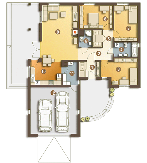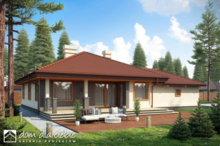 Współczesny dom dla 4-5 osobowej rodziny. Wygodny rozkład funkcjonalny oraz obszerny salon z kuchnią oraz jadalnią gwarantuje wygodę i komfort dla rodziny. Dom podzielony na strefy: wspólną i indywidualną zapewnia odpoczynek mieszkańcom. Poddasze przeznaczone na cele nieużytkowe. Centralnie umieszczony kominek umożliwia zastosowanie ogrzewania kominowego.fundamenty: BETONOWE ściany zewnętrzne: POROTHERM+STYROPIAN TERMO ORGANIKA ściany wewnętrzne: POROTHERM, CEGŁ.DZIURAWKA rodzaj stropu: DREWNIANY elewacje: TYNK STRUKTURALNY, OKŁADZINA KAMIENNA pokrycie dachu: DACHÓWKA CEM. lub CER