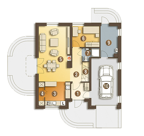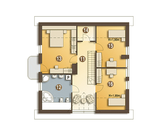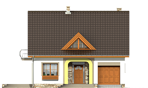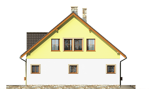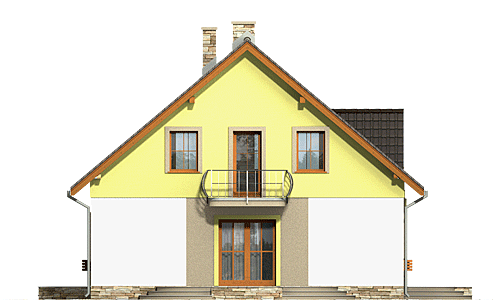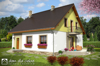 Funkcjonalny, ekonomiczny, tradycyjny dom jednorodzinny z poddaszem użytkowym dla czteroosobowej rodziny. Budynek posiada prostą konstrukcję i zwartą bryłę a równocześnie klasyczny i urokliwy wygląd. Parter stanowią (oprócz wiatrołapu i łazienki): pokój, który można przeznaczyć na gabinet lub dodatkową sypialnię, wygodna kuchnia ze spiżarnią, oraz atrakcyjny salon, z którego wychodzi się na duży taras. Garaż włączony do bryły, dostępny jest z wiatrołapu a pom. gospodarcze z piecem C.O. znajduje się za garażem. Poddasze składa się z trzech sypialni oraz obszernej łazienki. Sypialnia rodziców posiada balkon, który równocześnie chroni przed opadami wyjście tarasowe na parterze.fundamenty: BETONOWE ściany zewnętrzne: POROTHERM+STYROPIAN TERMO ORGANIKA ściany wewnętrzne: POROTHERM rodzaj stropu: TERIVA elewacje: TYNK STRUKTURALNY, OKŁ.KAMIENNA pokrycie dachu: DACHÓWKA CEM. lub CER.