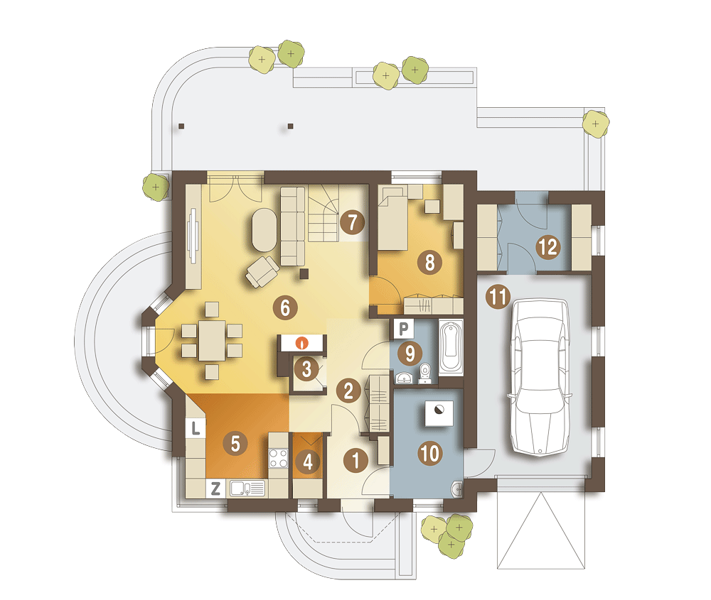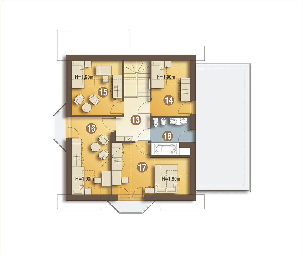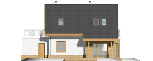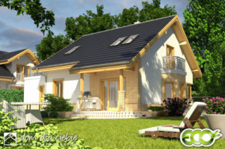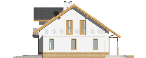 Klasyczny dom z użytkowym poddaszem nawet dla 5-6cio osobowej rodziny, o proporcjonalnym wyglądzie i wyważonych detalach. Na parterze znajdziemy otwartą przestrzeń obejmującą salon ze schodami na poddasze, jadalnię oraz kuchnię ze spiżarnią. Zaprojektowano tu także dodatkowy pokój, dużą łazienkę oraz sporą kotłownię przewidzianą na różne rodzaje paliw ( do wyboru). Z kotłowni przechodzimy do garażu i dalej do pomieszczenia gospodarczego. Na tym poziomie znajdziemy także kominek oraz garderobę. Piętro przeznaczone na strefę indywidualną to cztery sypialnie i łazienka z wyjściem na taras. Mamy tu również taras wygospodarowany na garażem i pomieszczeniem gospodarczym. Puszczyk to uroczy dom z efektownym zadaszeniem w formie balkonu nad wejściem. Tradycyjna architektura budynku świetnie wpisze się w każdy krajobraz.fundamenty: BETONOWE ściany zewnętrzne: POROTHERM+STYROPIAN TERMO ORGANIKA rodzaj stropu: TERIVA I elewacje: TYNK STRUKTURALNY pokrycie dachu: DACHÓWKA CEM. lub CER.