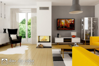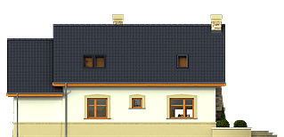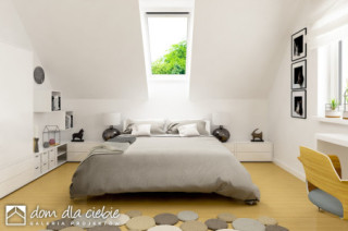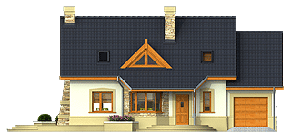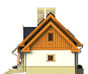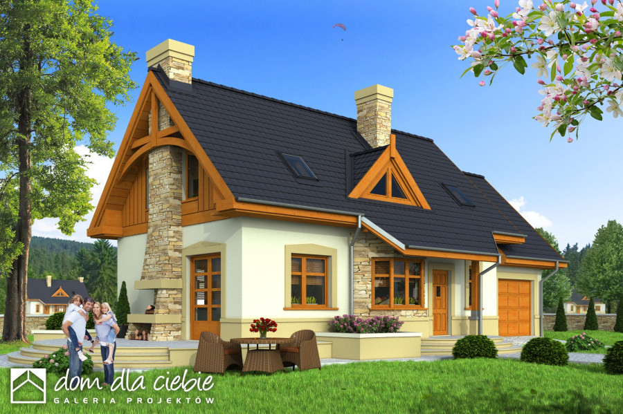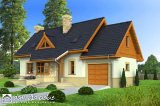 Agatka II z garażem jednostanowiskowym to powiększona wersja bardzo popularnego projektu małego domu naszego autorstwa - o nazwie Agatka. W stosunku do swojej poprzedniczki Agatka II posiada aż 5 pokoi mieszkalnych i proporcjonalnie większe pozostałe pomieszczenia. Pomimo zmian rozmiarów domu jest on nadal atrakcyjną propozycją dla osób szukających przytulnego i niedrogiego domu z poddaszem użytkowym dla 4 do 5-cio osobowej rodziny. Parter jako część ogólna obejmuje: doświetlony z trzech stron pokój dzienny z kominkiem oraz miejscem do spożywania posiłków, kuchnię, pokój sypialny - od strony ogrodowej, łazienkę oraz dostępną z wiatrołapu pralnię + c.o. z piecem na paliwo gazowe oraz przybudowany garaż. Poddasze to część prywatna, obejmująca: aż trzy sypialnie oraz wygodną wspólną łazienkę. Dodatkowo nad dobudowanym garażem przewidziano strych, dostępny z sypialni, który można wykorzystać jako kolejne pomieszczenie użytkowe. Budynek posiada oryginalny zewnętrzny kominek tarasowy od strony ogrodowej. Ten mały dom z powodzeniem może być wykorzystany jako rekreacyjny - całoroczny... Sprawdź inne projekty domów - Zapraszamy !