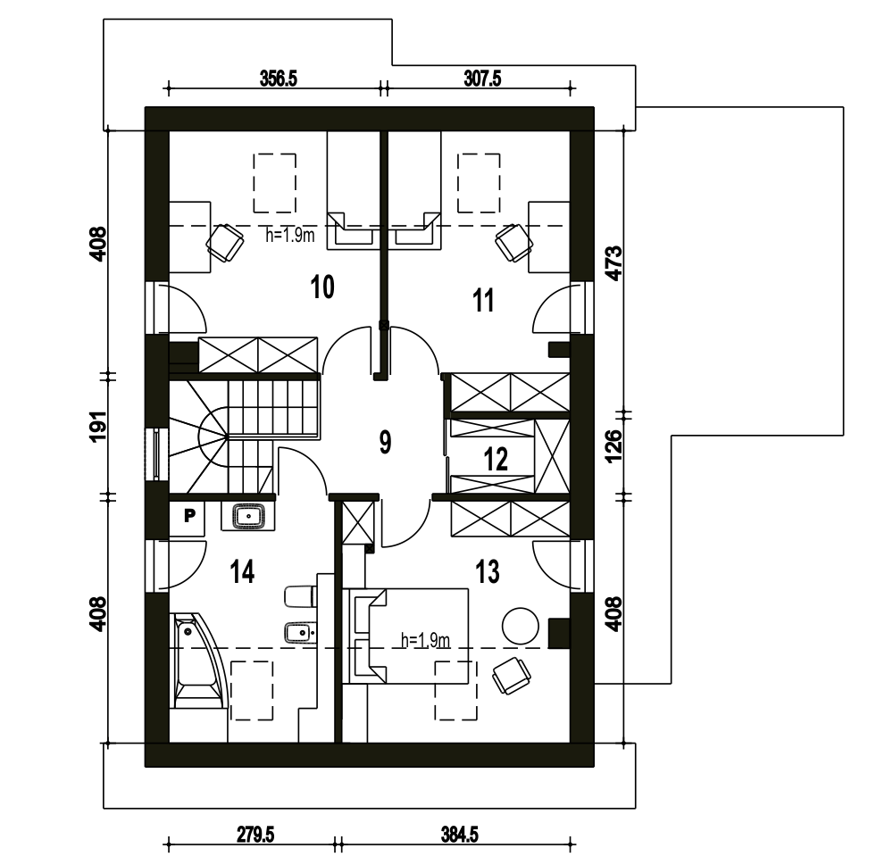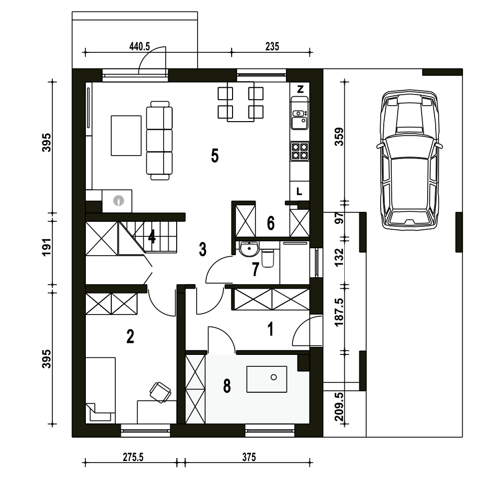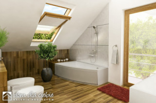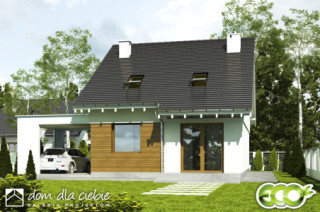 Projekt domu Głuszec jest przykładem klasycznego domu jednorodzinnego z poddaszem przeznaczonym na cele mieszkalne. Ten dwukondygnacyjny i prosty konstrukcyjnie dom jest dobrą alternatywą na wąskie działki lub do zabudowy bliźniaczej. do budynku prowadzi zadaszone wejście usytuowane z boku budynku. Połączono je z dużą wiatą przed domem. Na parterze zaproponowano strefę wspólną a także dodatkowy pokój mogacy pełnić funkcję gościnnego lub gabinetu. Z salonu z jadalnią i kuchnią można wyjść na taras i kominek. W kuchni znajdziemy spiżarnię a obok niej łazienkę. Dużą kotłownię zaprojektowano od frontu budynku. Na piętrze w projekcie zaproponowano trzy sypialnie, garderobę oraz duża łazienkę. Głuszec to dom ekonomiczny w budowie i eksploatacji. Ze względów ekonomicznych zrezygnowano z balkonów i tarasów. Zastosowane portfenetry i dodatkowo okna połaciowe sprawią, że każde pomieszczenie na poddaszu będzie doskonale doświetlone. Elewacę domu charakteryzuje delikatny detal i naturalna kolorystyka.fundamenty: BETONOWE ściany zewnętrzne: POROTHERM+STYROPIAN TERMO ORGANIKA rodzaj stropu: TERIVA I elewacje: TYNK STRUKTURALNY pokrycie dachu: DACHÓWKA CEM. lub CER.