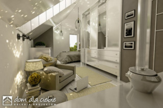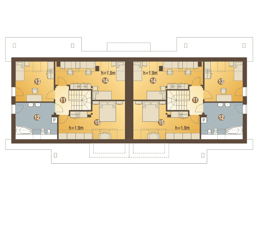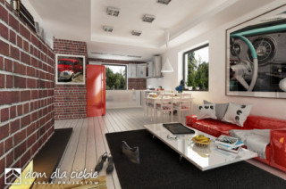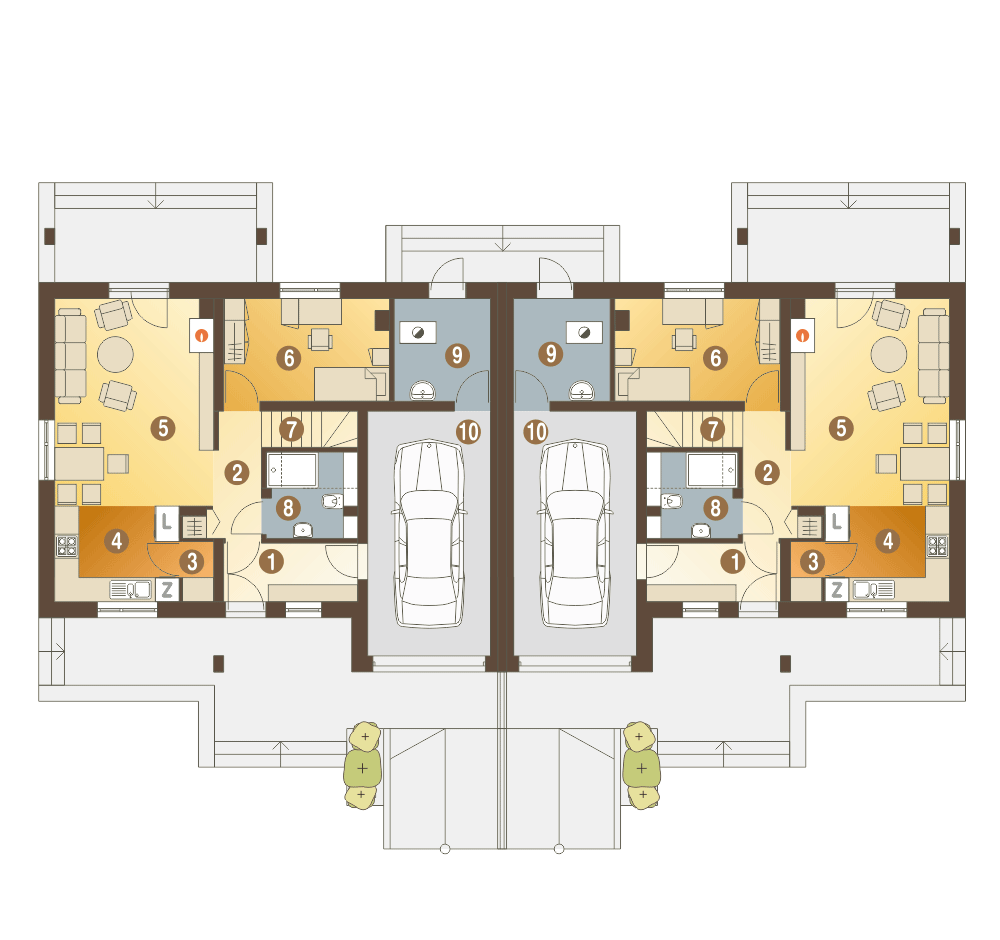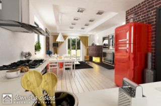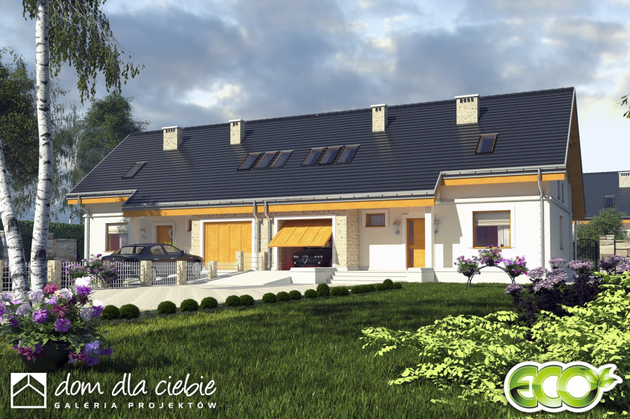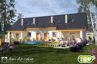 (Uwaga: projekty typu bliźniak oferujemy jako domy dwulokalowe, projekt można zamówić również w zabudowie bliźniaczej) Projekt Alka A-BL1 to połączenie dwóch segmentów ścianami szczytowymi przy garażu. Opis dotyczy jednego segmentu. Gotowy projekt Alka to propozycja niewielkiego domu dla 4-5 osobowej rodziny. Projekt pokrywa się z tendencjami rynkowymi - jest ekonomiczny, zwarty, z wymagającą funkcją i atrakcyjnym tradycyjnym wyglądem. Alka mieści w swojej kubaturze 5 pokoi (salon + 4 osobne pokoje). Salon stanowiący centrum domu, połączony jest z kuchnią, przy której zaprojektowano niewielką spiżarnię. Salon posiada wyjście na zadaszony taras sprzyjający relaksowi na świeżym powietrzu oraz kominek. W głębi domu, na parterze przewidziano dostępny z holu pokój gościnny mogący służyć również jako gabinet. Pod schodami prowadzącymi na poddasze zaprojektowano łazienkę z prysznicem. Wiatrołap stanowi również przejście do garażu, z którego można dostać się do kotłowni na paliwo stałe. Na piętrze zaproponowano dostępne z holu: duży salon kąpielowy oraz trzy sypialnie.