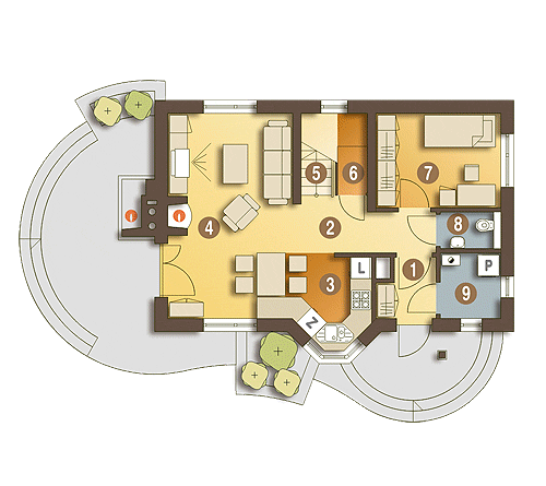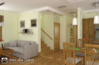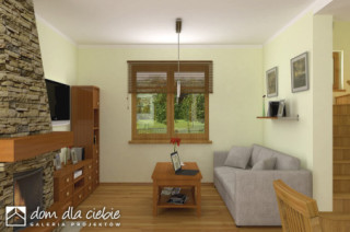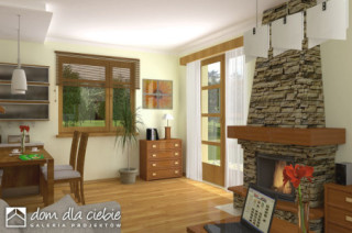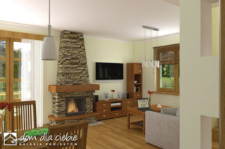 Agatka styl to sympatyczny, niewielki projekt małego domu piętrowego dla 3 do 4-ro osobowej rodziny. Parter jako część ogólna obejmuje: doświetlony z trzech stron pokój dzienny z kominkiem oraz miejscem do spożywania posiłków, kuchnię, pokój sypialny - od strony ogrodowej, wc oraz dostępną z wiatrołapu pralnię + c.o. Piętro to część prywatna, obejmująca: dwie sypialnie oraz wspólną łazienkę. Budynek posiada atrakcyjny zewnętrzny kominek od strony ogrodowej. Ten mały dom z powodzeniem może być wykorzystany jako rekreacyjny - całoroczny... Sprawdź inne projekty domów - Zapraszamy !fundamenty: BETONOWE ściany zewnętrzne: POROTHERM+STYROPIAN TERMO ORGANIKA ściany wewnętrzne: POROTHERM,CEGŁ.DZIURAWKA,G-K rodzaj stropu: TERIVA elewacje: TYNK STRUKTURALNY, OKŁADZINA KAMIENNA, OKŁADZINA DREWNIANA pokrycie dachu: DACHÓWKA CEM. lub CER.