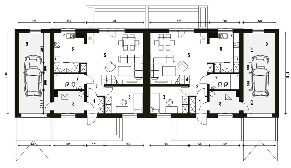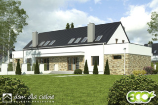 (Uwaga: projekty typu bliźniak oferujemy jako domy dwulokalowe, projekt można zamówić również w zabudowie bliźniaczej) Dom Sosnówka zaprojektowano na rzucie prostokąta gdzie kalenica jest równoległa względem elewacji frontowej. Doskonale wpisze się na nieduże działki o średniej wielkości i ze względu na typowy kształt będzie się dobrze komponował w każdym otoczeniu.