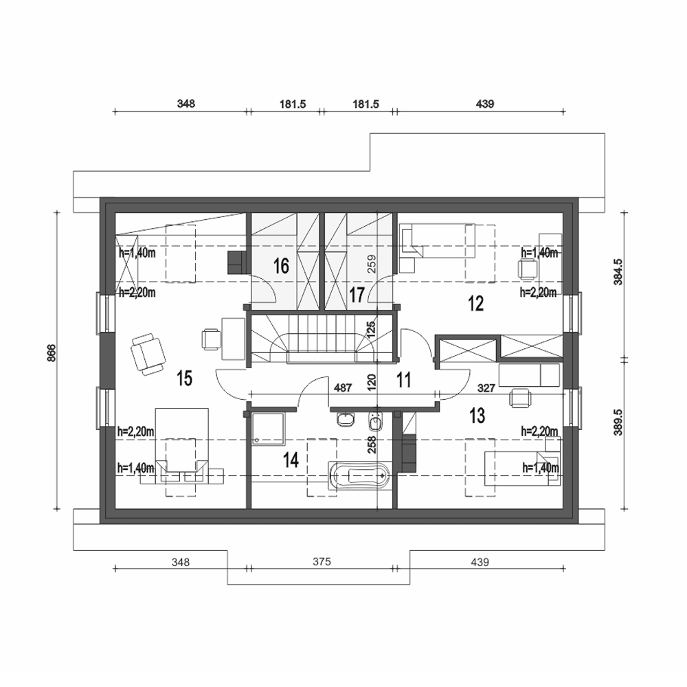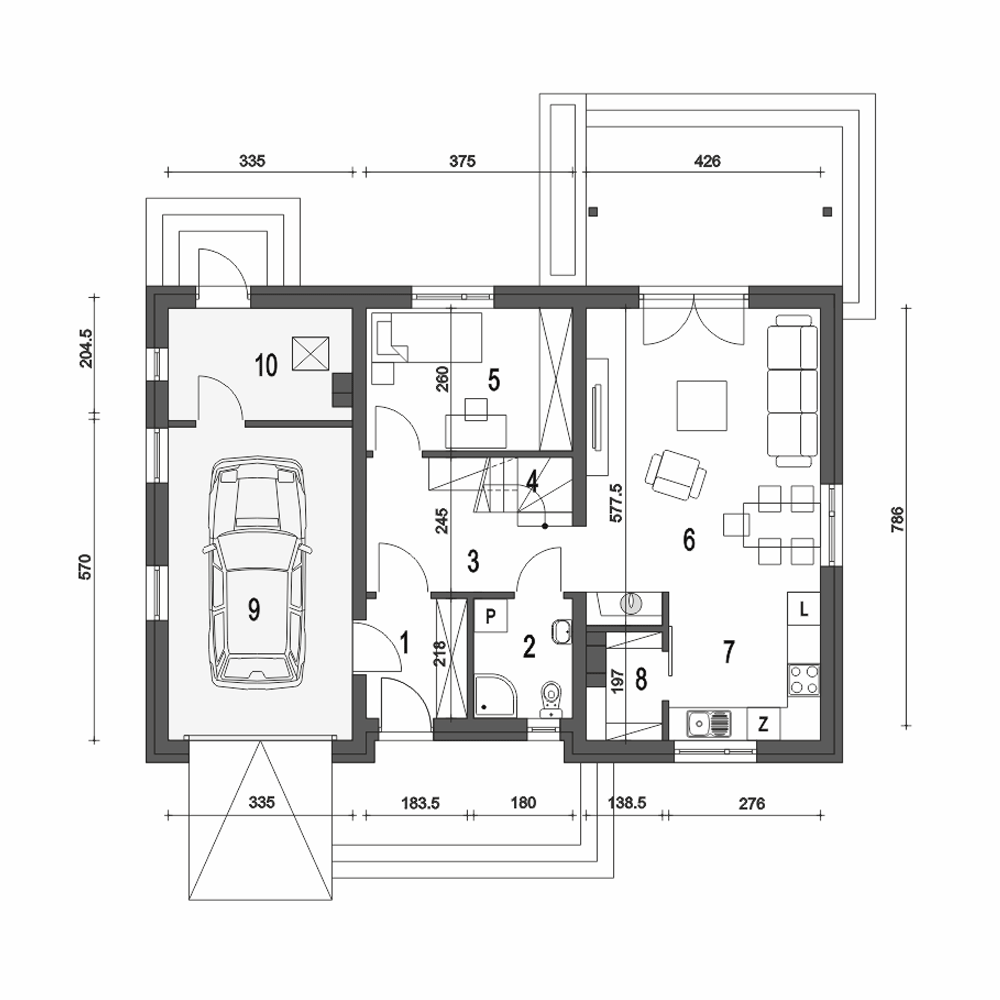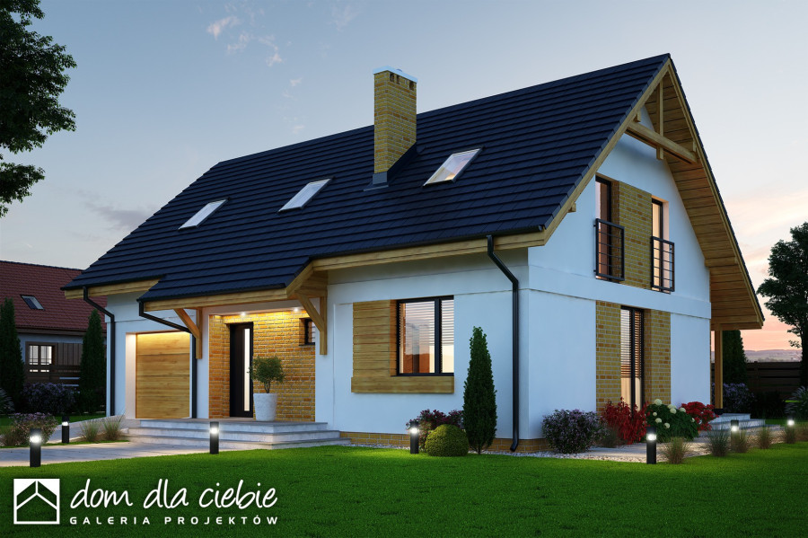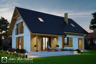 Westa to niewielki projekt domu z poddaszem użytkowym dla 4,5-osobowej rodziny. Charakteryzuje się współczesną formą. Elewację wykończono klinkierem oraz drewnem w ciepłym odcieniu. Nieskomplikowana bryła, dwuspadowy dach i prosta konstrukcja pozwolą na obniżenie kosztów budowy. Wejście do domu jak i taras z tyłu są zadaszone przedłużoną połacią dachową. Wnętrze domu to część dzienna mieszcząca się na parterze, w skład której wchodzi salon z jadalnią oraz aneksem kuchennym - wszystko to tworzy otwartą przestrzeń. Spiżarnia dostępna jest z kuchni. W centralnej części domu znajduje się kominek. Z korytarza dostępny jest pokój, który może służyć również jako gabinet, następnie łazienka i schody. Przestrzeń pod schodami można zagospodarować na schowek. Wiatrołap posiada przejście do garażu, na końcu którego znajduje się kotłownia z wyjściem na zewnątrz.Cześć nocna to poddasze, którego częścią są trzy sypialnie (dwie posiadają garderobę) oraz łazienka z miejscem na wannę jak i prysznic.fundamenty: BETONOWE ściany zewnętrzne: POROTHERM+STYROPIAN TERMO ORGANIKA rodzaj stropu: TERIVA I elewacje: TYNK STRUKTURALNY pokrycie dachu: DACHÓWKA CEM. lub CER.