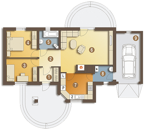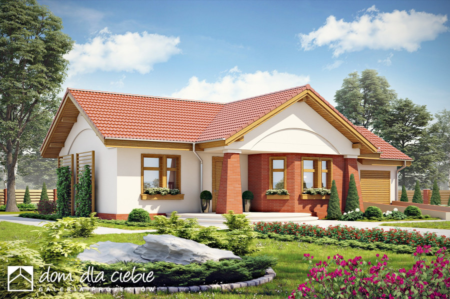 Skowronek styl to dom parterowy przeznaczony dla 2-3 osobowej rodziny o ciekawej, przyjaznej architekturze i prostej funkcji. Na jednym poziomie zaprojektowano dwie wygodne sypialnie, łazienkę, oraz wygodny salon z kominkiem. Z garażu można przejść bezpośrednio do kuchni poprzez pomieszczenie techniczne z piecem CO. Skowronek styl może z powodzeniem służyć jako domek letniskowy. Projekt dostępny również w wersji bez garażu.fundamenty: BETONOWE ściany zewnętrzne: POROTHERM+STYROPIAN TERMO ORGANIKA ściany wewnętrzne: POROTHERM rodzaj stropu: DREWNIANY elewacje: TYNK AKRYLOWY, OKŁADZINA KAMIENNA pokrycie dachu: DACHÓWKA CEM. lub CER.