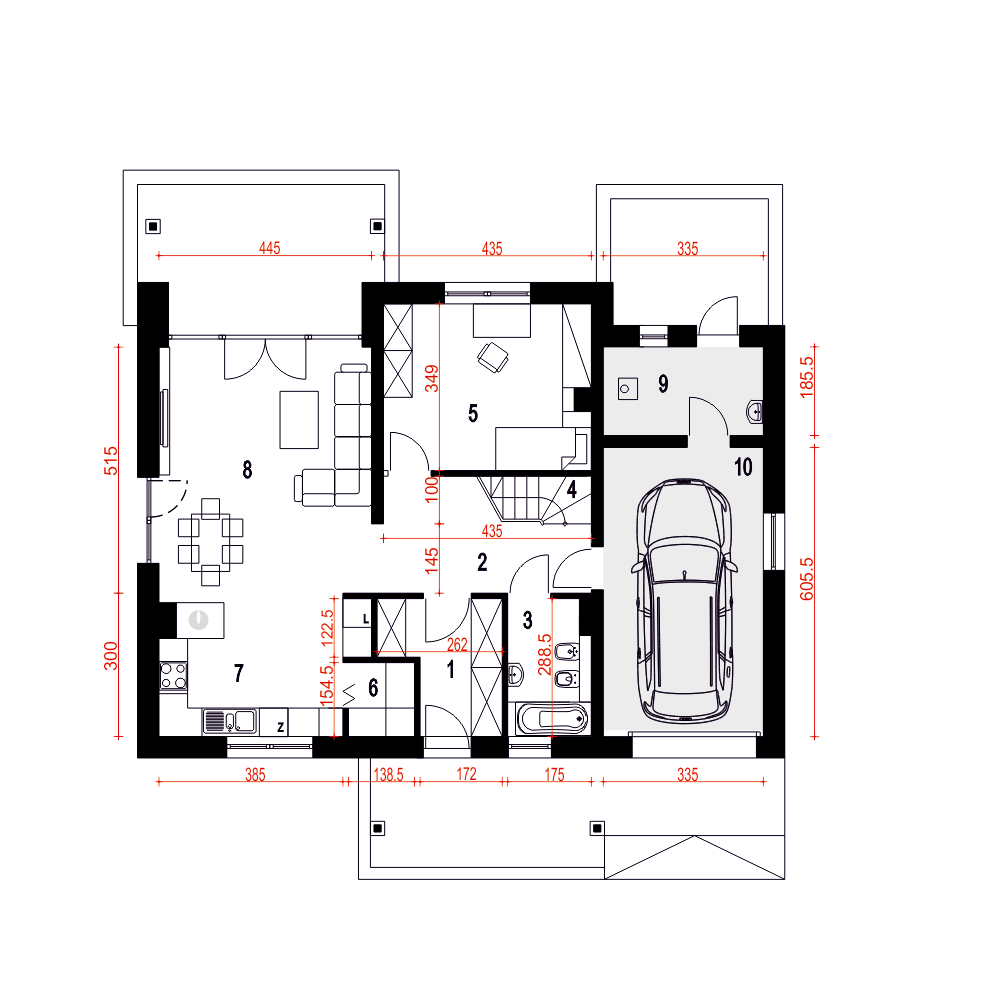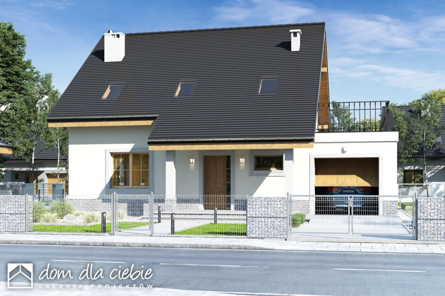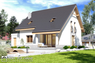 Strzyżyk to propozycja dla 4-5 osobowej rodziny. Bryła budynku przekryta jest dwuspadowym dachem. Układ funkcjonalny domu dostosowano do potrzeb mieszkańców. Wejście do domu prowadzi przez wiatrołap do holu wokół którego zlokalizowano salon z otwartą kuchnią i spiżarnią oraz kominkiem.Dom wyposażono w pomieszczenie z piecem co oraz garaż.Poddasze stanowi strefa nocna, znajdziemy tu trzy sypialnie, łazienkę oraz pralnię. Zewnętrzny wizerunek budynku cechuje prostota i elegancja.fundamenty: BETONOWE ściany: POROTHERM+STYROPIAN rodzaj stropu: TERIVA I elewacje: TYNK STRUKTURALNY pokrycie dachu: DACHÓWKA CEM. lub CER.