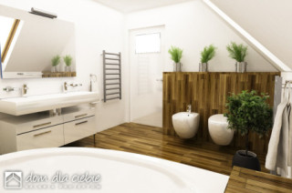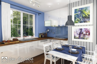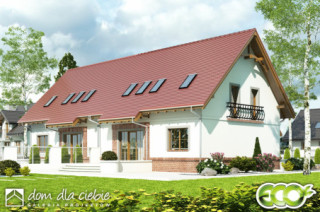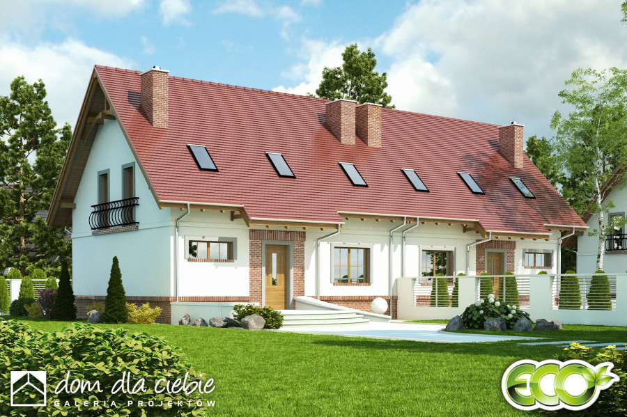 (Uwaga: projekty typu bliźniak oferujemy jako domy dwulokalowe, projekt można zamówić również w zabudowie bliźniaczej) Sosnówka II B-BL2 powstała poprzez połączenie dwóch segmentów ścianami szczytowymi od strony salonów. Poniższy opis dotyczy jednego segmentu: Dom Sosnówka II zaprojektowano na rzucie prostokąta gdzie kalenica jest równoległa względem elewacji frontowej. Doskonale wpisze się na nieduże działki o średniej wielkości i ze względu na typowy kształt będzie się dobrze komponował w każdym otoczeniu. Ze względu na prostą formę projekt ten zalicza się do tanich w budowie i eksploatacji. Widać tu wyraźny podział na strefę dzienną na parterze oraz nocną na poddaszu.Pod schodami umieszczono kominek. Na parterze oprócz przestronnego salonu zaprojektowano osobną kuchnię oraz pokój gościnny z indywidualną łazienką. Na tym poziomie mamy także wc oraz pomieszczenie z piecem co. Na poddaszu zaplanowano 3 sypialnie oraz łazienkę i garderobę.
