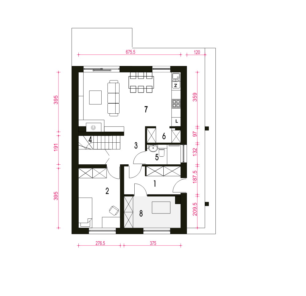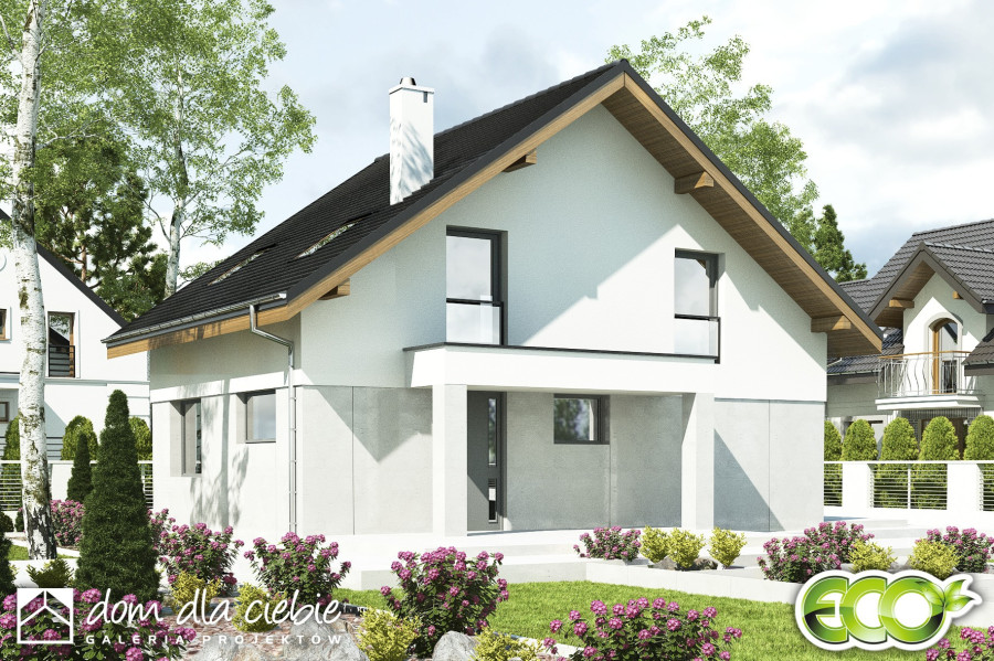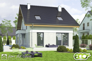 Agat to jednorodzinny dom wpisujący się idealnie w ofertę budynków tanich i ekonomicznych w budowie i w eksploatacji, co udaje się osiągnąć poprzez optymalnie zaprojektowaną funkcję i zwartą bryłę. Agat to dom nieduży, nowoczesny i wygodny dla 4-5 osobowej rodziny. Strefa wejściowa do budynku przewiduje duży wiatrołap wyposażony w solidne szafy wnękowe z dostępem do pomieszczenia technicznego z piecem na paliwo stałe. Na parterze zaprojektowano jasny, praktyczny salon połączony z kuchnią , dodatkowy pokój, łazienkę oraz spiżarnię i garderobę wygospodarowaną w przestrzeni pod schodami. Na piętrze zaplanowano 3 sypialnie, garderobę oraz łazienkę. Projekt przeznaczony jest do zabudowy wolno stojącej oraz bliźniaczej na małe i średnie działki.