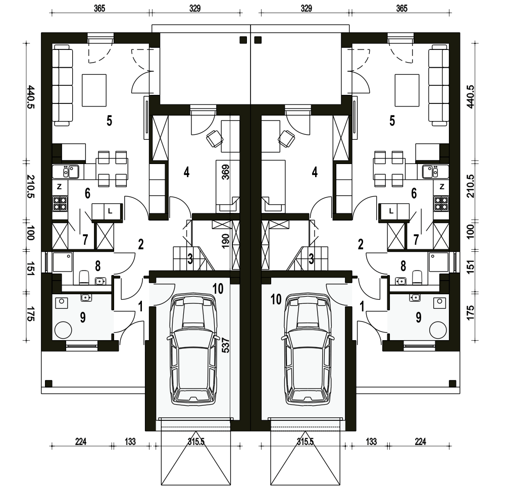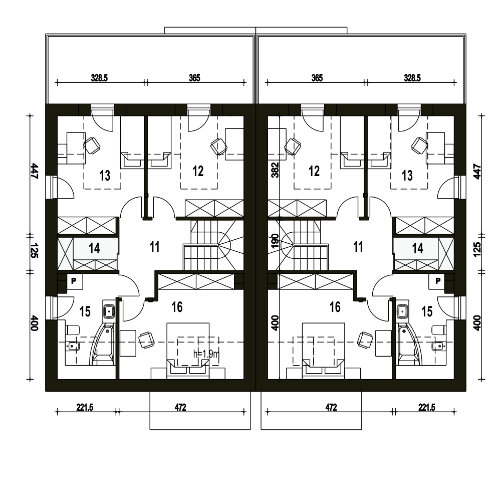 (Uwaga: projekty typu bliźniak oferujemy jako domy dwulokalowe, projekt można zamówić również w zabudowie bliźniaczej) Poniższy opis dotyczy jednego segmentu: Makolągwa to propozycja niedużego domu dedykowanego 4-5 osobowej rodzinie o prostej bryle i optymalnej funkcji. Dom wyposażony został w częściowo wbudowany w garaż, dostępny jest poprzez wiatrołap z wejściem do kotłowni. dalej mamy kuchnię ze spiżarnią, jadalnię oraz salon z kominkiem. Mamy tu również dodatkowy pokój mogący spełniać funkcję gabinetu lub pokoju gościnnego oraz niewielką łazienkę z natryskiem. Pod schodami wygospodarowano miejsce na szafy. Na piętrze zaprojektowano 3 sypialnie, garderobę oraz łazienkę. Makolągwa to przykład domu dla osób praktycznych z ekonomicznym podejściem do inwestycji.