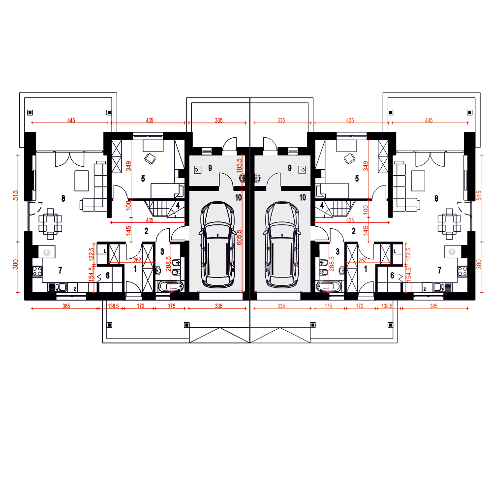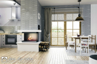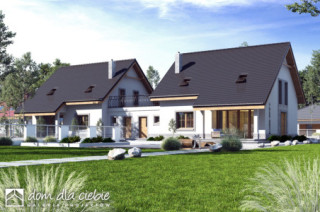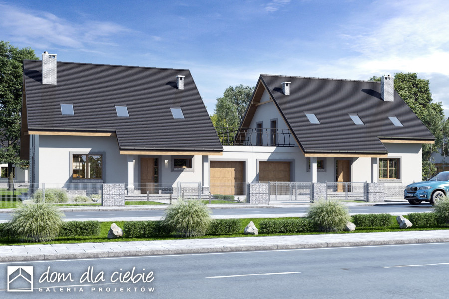 (Uwaga: projekty typu bliźniak oferujemy jako domy dwulokalowe, projekt można zamówić również w zabudowie bliźniaczej) Strzyżyk A-BL powstanie poprzez połączenie dwóch segmentów od strony garaży. Poniższy opis dotyczy jednego lokalu: Strzyżyk to propozycja dla 4-5 osobowej rodziny. Bryła budynku przekryta jest dwuspadowym dachem. Układ funkcjonalny domu dostosowano do potrzeb mieszkańców. Wejście do domu prowadzi przez wiatrołap do holu wokół którego zlokalizowano salon z otwartą kuchnią i spiżarnią oraz kominkiem.Dom wyposażono w pomieszczenie z piecem co oraz garaż.Poddasze stanowi strefa nocna, znajdziemy tu trzy sypialnie, łazienkę oraz pralnię. Zewnętrzny wizerunek budynku cechuje prostota i elegancja.