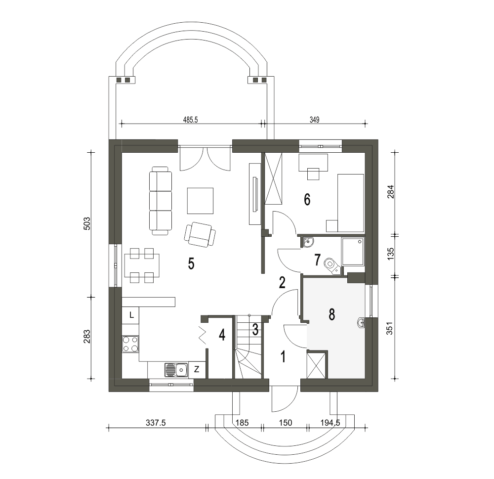 Nela II to projekt domu jednorodzinnego, powstały po modyfikacji domu Inka II. Jest to niewielki dom z poddaszem użytkowym, przeznaczony dla 3-4 osób, mieszczący wszystkie potrzebne pomieszczenia w bardzo funkcjonalnym układzie.fundamenty: BETONOWE ściany zewnętrzne: POROTHERM+STYROPIAN TERMO ORGANIKA ściany wewnętrzne: POROTHERM, GK rodzaj stropu: TERIVA I elewacje: TYNK STRUKTURALNY, OKŁ.KLINKIEROWA pokrycie dachu: DACHÓWKA CEM. lub CER.