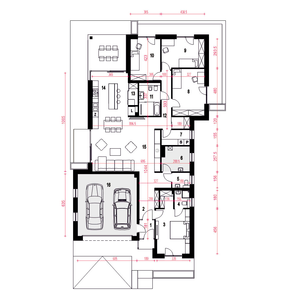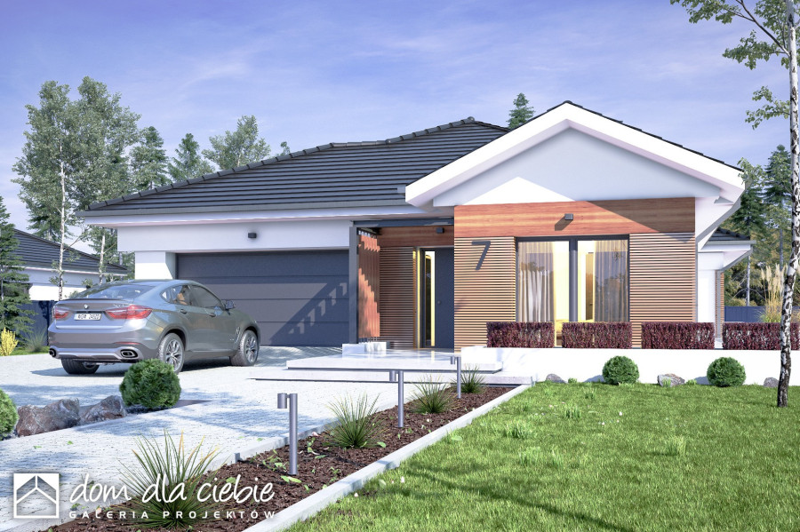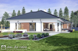 Projekt Galena III jest domem dużym, rozłożystym dopasowanym do wielkości standardowych działek na nowoczesnych osiedlach. Dla wszystkich szukających domu o oryginalnej funkcji projekt Galena III jest idealnym rozwiązaniem. Galena to projekt z podwójnym garażem, czterema sypialniami w tym jedną podwójną - typu master bedroom z indywidualna łazienką i garderobą. Przestrzeń wspólną stanowi komfortowe wnętrze salonu z otwartą kuchnią, wyspą kuchenną, jadalnią, miejscem z kominkiem i wejściem na zadaszony luksusowy taras w podcieniu domu. Uzupełnieniem funkcji domu są pomieszczenia takie jak WC, spiżarnia przy kuchni, pomieszczenie techniczne z pralką i suszarką . Piękne duże przeszklenia od strony wszystkich pokoi, jadalni i salonu umożliwią dostęp dobrego dziennego światła dla mieszkańców tego wymarzonego domu. Elewacje domu zostały zaprojektowane z myślą o nowoczesnej stylistyce i luksusowej funkcji domu.fundamenty: BETONOWE ściany: POROTHERM+STYROPIAN rodzaj stropu: prefabrykowane wiązary dachowe Mitek elewacje: TYNK STRUKTURALNY pokrycie dachu: DACHÓWKA CEM. lub CER.