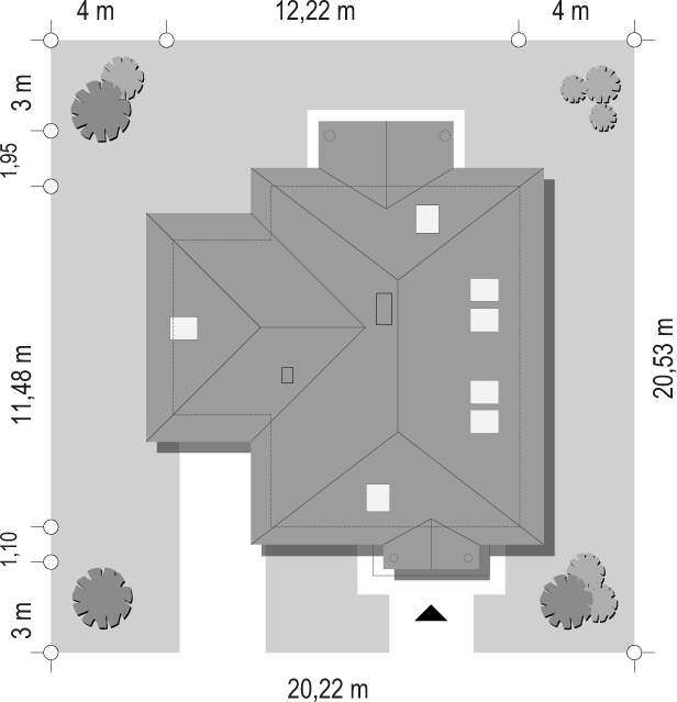 Nieduży, parterowy, prosty, tani w budowie, przeznaczony dla 3-4 osób. Mimo niewielkich rozmiarów, dom jest bardzo komfortowy dzięki obszerności strefy dziennej. Mała ilość ścian nośnych daje duże możliwości innej aranżacji wnętrza całego domu. Usytuowanie kominka umożliwia efektywne rozprowadzenie ciepła w domu. Dostępne są wersje: A - bez garażu, B - z garażem, C - z podwójnym garażem.