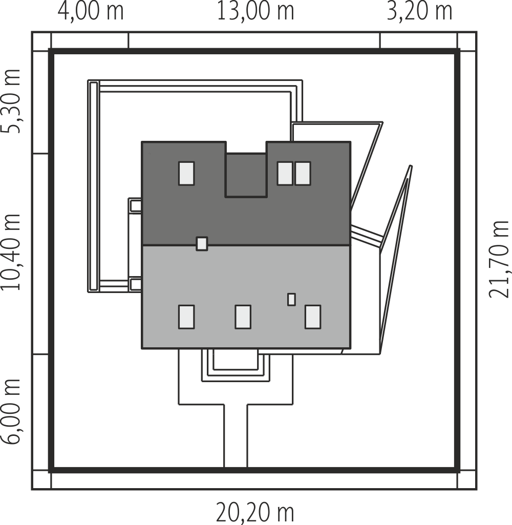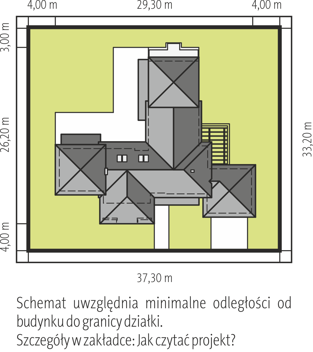 'Nieduży dom o zwartej bryle, niepodpiwniczony, przeznaczony dla rodziny 4-5-osobowej. Poddasze można pozostawić jako otwartą przestrzeń o powierzchni użytkowej 29,3 m2 lub wydzielić z niej dwie sypialnie oraz łazienkę. Na parterze można zrezygnować ze ścianki między kuchnią i jadalnią, zastępując ją np. barkiem, uzyskując przestronne wnętrze.