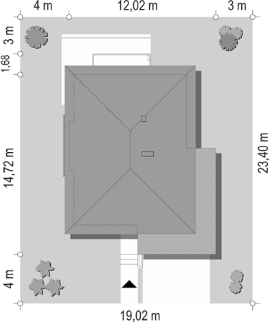 Scarlet - piętrowy dom dla 3-4 osobowej rodziny, z wbudowanym podwójnym garażem. Mimo niewielkich gabarytów, dom oferuje stosunkowo dużą przestrzeń mieszkalną dzięki połączeniu pok. dziennego z jadalnią. Zastosowanie dużych przeszkleń drzwi tarasowych integruje dom z ogrodem i sprzyja wspólnemu spędzaniu czasu mieszkańców.