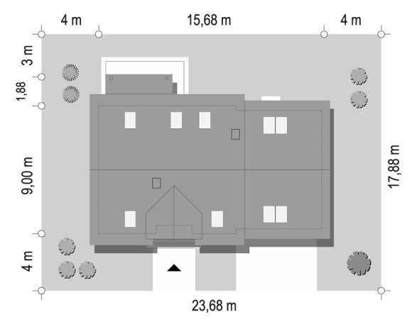 Lawenda 2 to dom z klasą. Tak samo jak jego starsza siostra - Lawenda - jest domem eleganckim, o ciepłym, funkcjonalnym i rozświetlonym wnętrzu. Piękny zadaszony taras i duże okna pozwalają na przenikanie się domu z ogrodem. Rozwiązanie doświetlenia pokoju dziennego od strony wjazdu pozwala ją sytuować również na działce z wjazdem od południa.