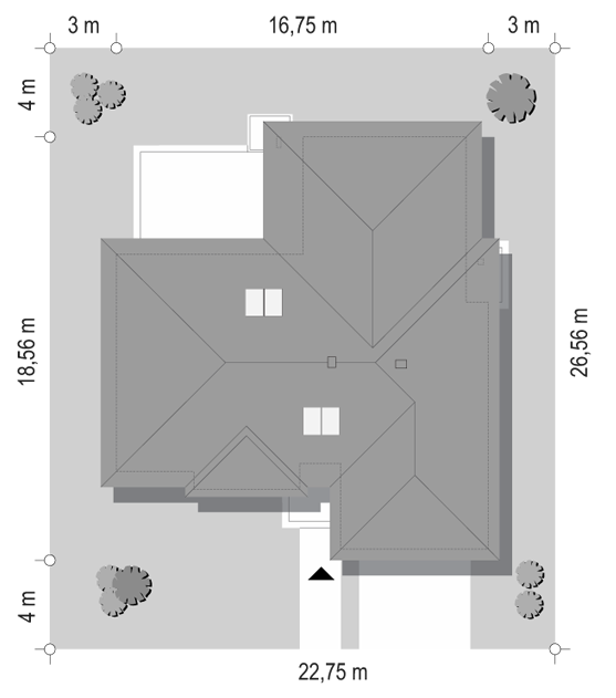 Nieduży, nowoczesny dom szeregowy dla 3-5 osobowej rodziny na bardzo wąską działkę. Na ten dom można uzyskać dotację z programu 'Mieszkanie dla młodych'. Parter to wygodny pokój dzienny z kuchnią i WC. Poddasze to trzy sypialnie z łazienką i dodatkowym wejściem na ewentualne poddasze, na którym można przewidzieć pracownię lub pokój fitness.