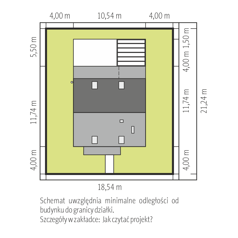 Projekt domu Skarabeusz Prima jest mniejszy od Skarabeusza Polo. Oba mają taki sam obrys parteru ale inaczej wykorzystują miejsce nad garażem - wersja Prima oferuje tu taras. W grupie domów o powierzchni ok. 130m2, z użytkowym poddaszem, dobudowanym garażem i z dodatkowym pokojem na parterze jest to jedyna taka propozycja. Ponadto wyróżnia ją najprostsza (obok Bruna) stylistyka przy dość tradycyjnej sylwetce bez balkonów i z dwuspadowym dachem bez lukarn. Zamiast historyzującego frontowego ganku zaprojektowano przedłużony nad wysuniętą sienią i tarasikiem okap głównej połaci wsparty na słupie. Podobnie zadaszono przeszklony ryzalit salonu od ogrodu. Projekt domu Skarabeusz Prima ma otwarty ale strefowany i wyraźnie oddzielony od holu pokój dzienny. Na podeście schodów znalazł się schowek pod skosem dachu. Poddasze jest jednopoziomowe i ma trzy sypialnie dla 4-5 osób połączone zgrabnym przedpokojem otwartym na ogólnie dostępny taras, który sąsiaduje wygodnie z łazienką. Obniżona w stosunku do parteru strefa wejściowa budynku razem z dostępną z holu kotłownią i garażem pozwala zastosować projekt na działce z lekkim, nieco ukośnym spadkiem ku wjazdowi.