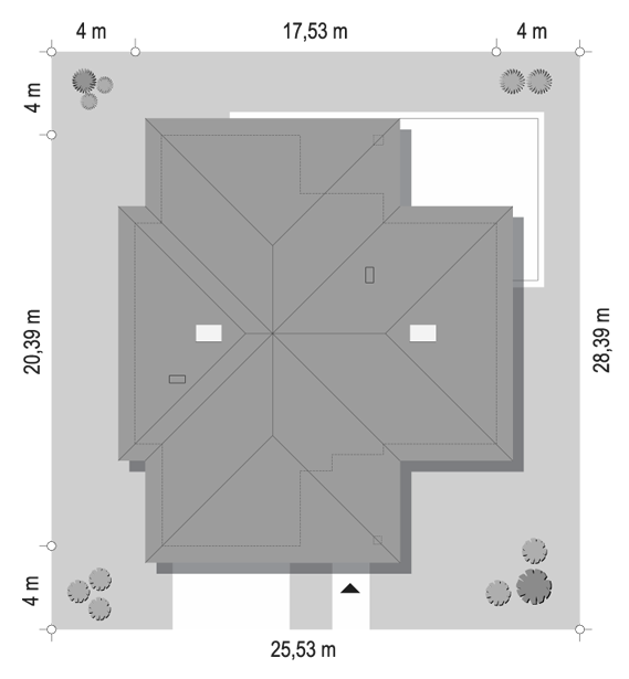 Rodzina Piryta wyróżnia się w ofercie Archetonu proponując domy piętrowe, z dobudowanym garażem. Z planu zbudowanego z nachodzących na siebie prostokątów wyrasta dwukondygnacyjna bryła, z przylegającym do jej dwóch elewacji, wysuniętym ku frontowi, niższym budynkiem. Nowoczesny, miejski styl podkreślają niezbyt strome, czterospadowe dachy. W projekcie domu Piryt G2 wymiary obrysu planu są identyczne jak w wersji Piryt G1 i przy tym nieco mniejsze w stosunku do Piryta i wariantu As, który ma podobnie dużą kotłownię. Parterowy budynek obejmuje strefę gospodarczą i podcień frontowy ale taras na tyłach kotłowni nie jest zadaszony jak w pozostałych wersjach. Duże mieszkanie ma zbliżony rozkład otwartego pokoju dziennego, z nieco innym układem kuchnia - jadalnia. Klatka schodowa, z przechodnim schowkiem pod biegami, prowadzi z holu zespolonego z salonem do czterech pokoi na piętrze. Projekt domu Piryt G2 ma tu tylko jedną łazienkę i pralnię ale, tak jak wersja G1 i inaczej niż Piryt i Piryt As, oferuje pełną łazienkę na parterze. Elewacje rozwiązano identycznie jak w całej rodzinie - balkonowe przeszklenia i narożne okna ujęto w pionowe i poziome pasy drewnopodobna okładziną.